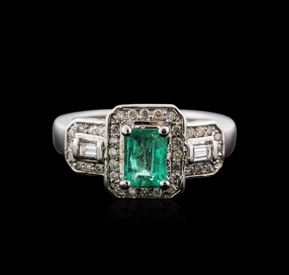 One ring featuring: 14KT white gold weighing 5.50 grams containing one emerald weighing 0.90ct and diamonds weighing a total of 0.57ct.