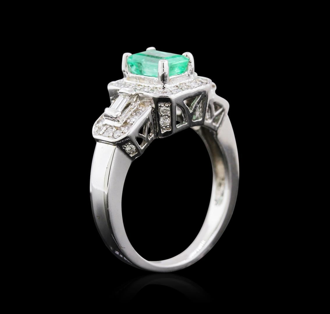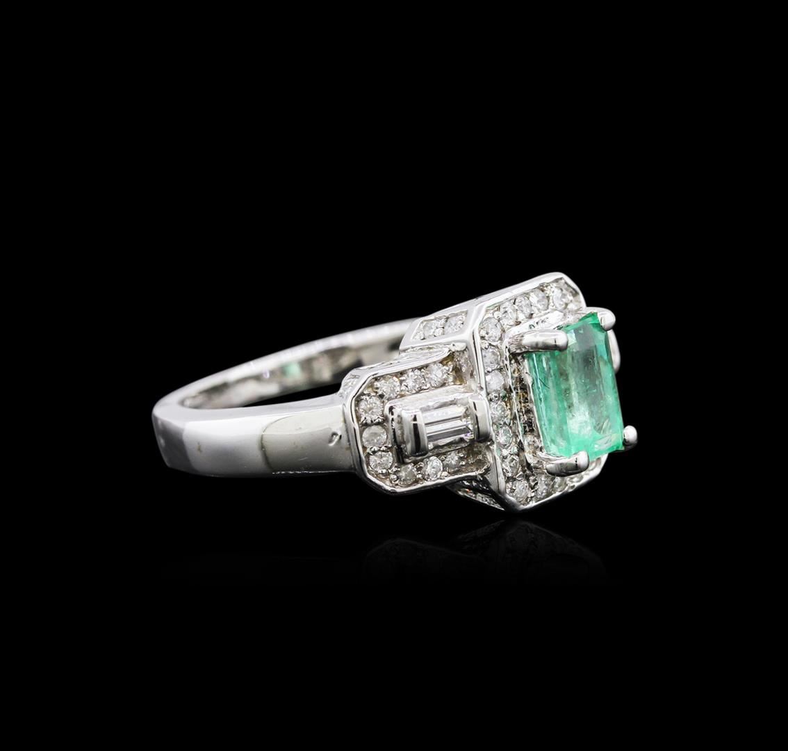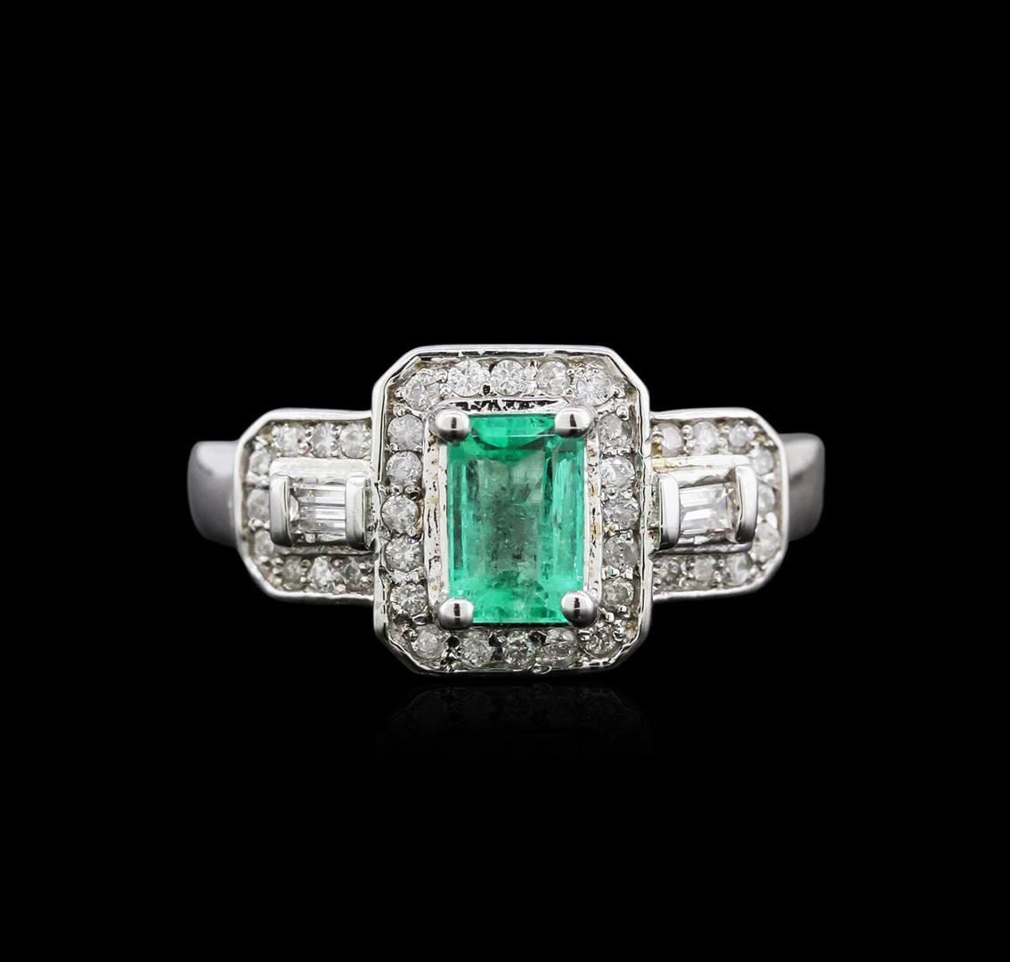 One ring featuring: 14KT white gold weighing 5.50 grams containing one emerald center stone with a total weight of 0.90ct and 54 baguette and round diamonds with a total weight of 0.57ct.