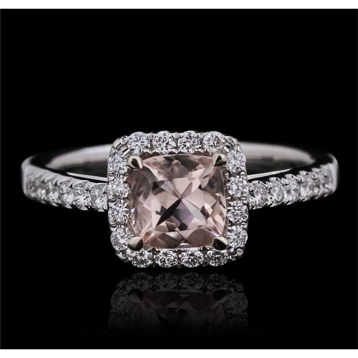 One ring featuring: 14KT white gold with a total weight of 3.51 grams, morganite with a total weight of 0.90ct, and diamonds with a total weight of 0.39ctw.
