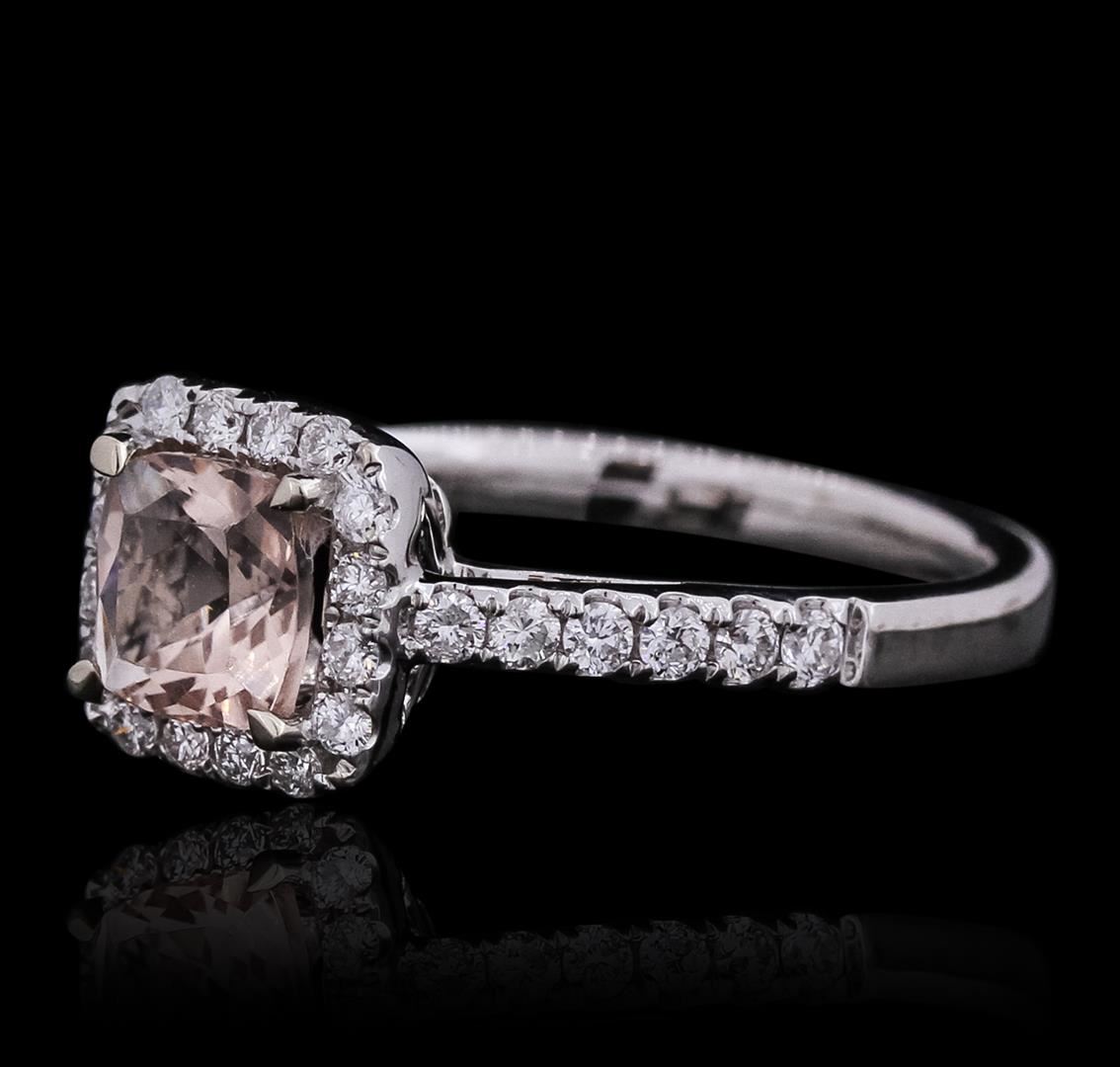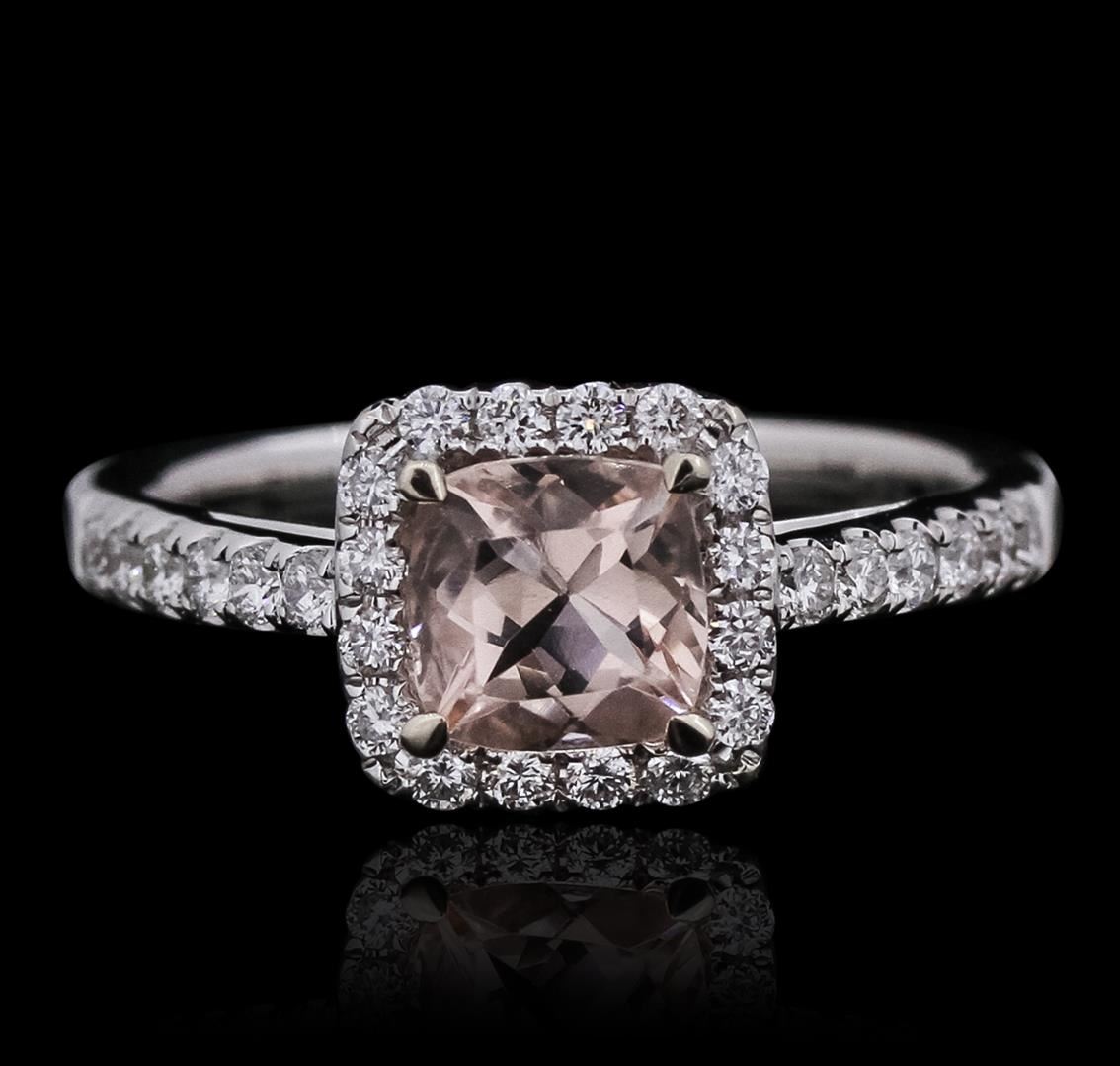 One ring featuring: 14KT white gold with a total weight of 3.51 grams, morganite with a total weight of 0.90ct, and diamonds with a total weight of 0.39ctw.