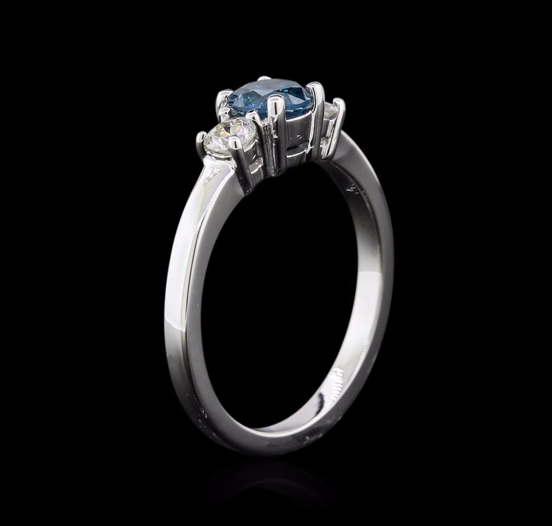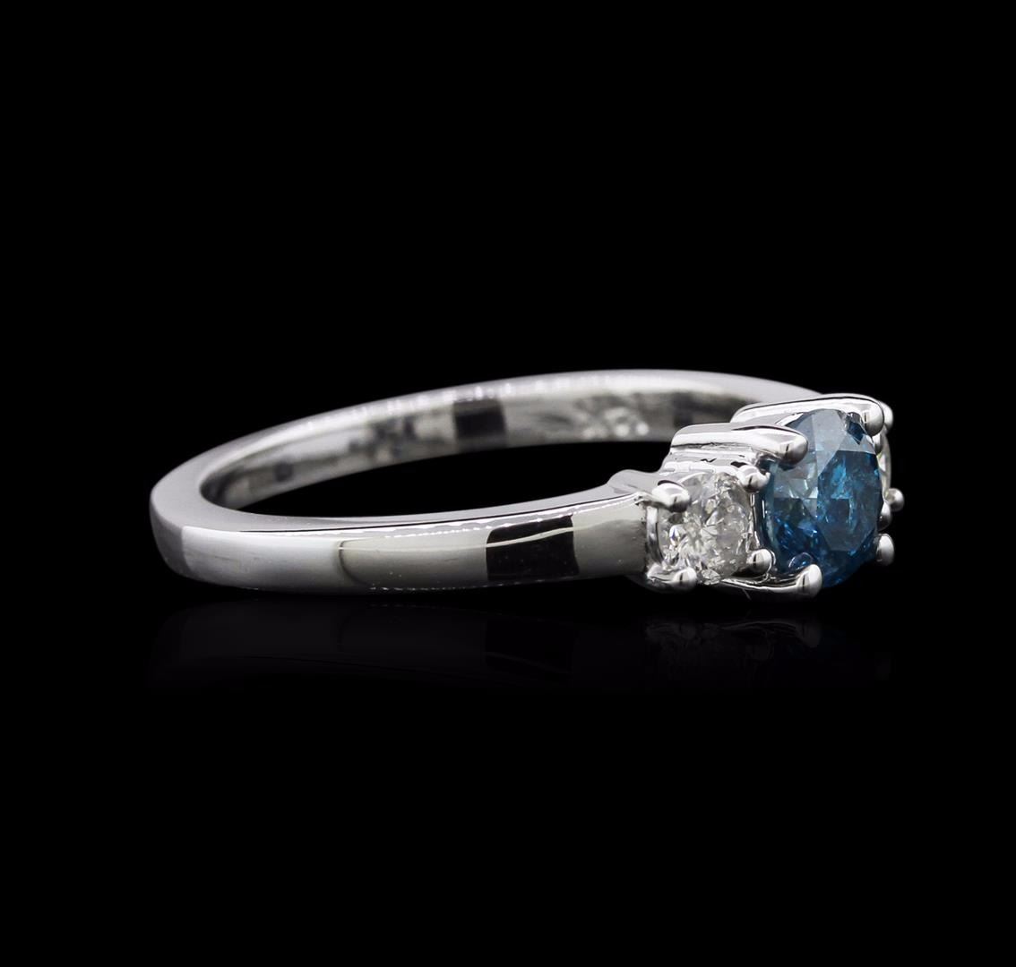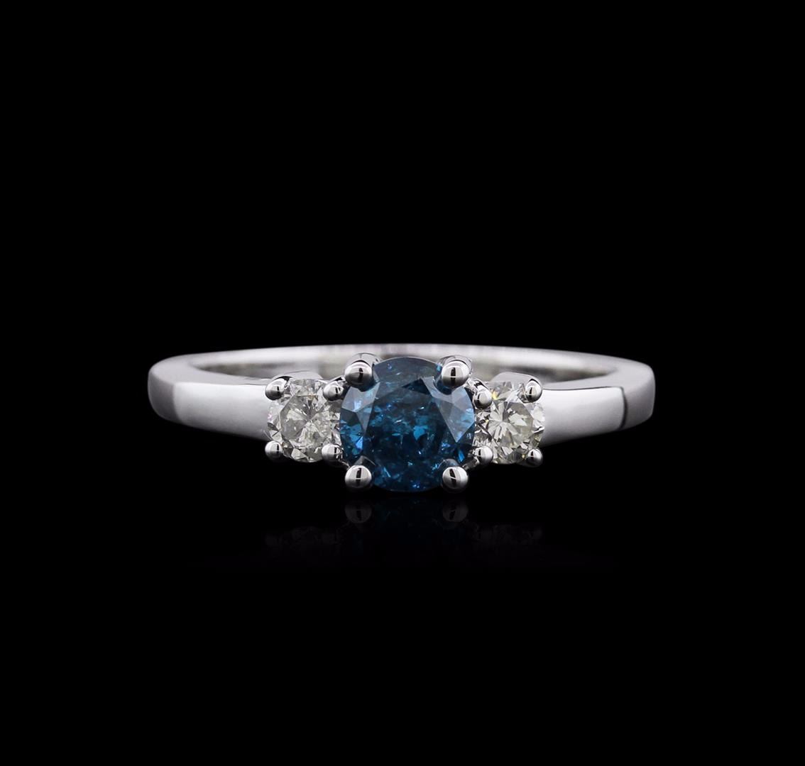One ring featuring: 14KT white gold weighing 3.60 grams containing one blue diamond center stone with a total weight of 0.62ct and two side diamonds with a total weight of 0.29ct.
