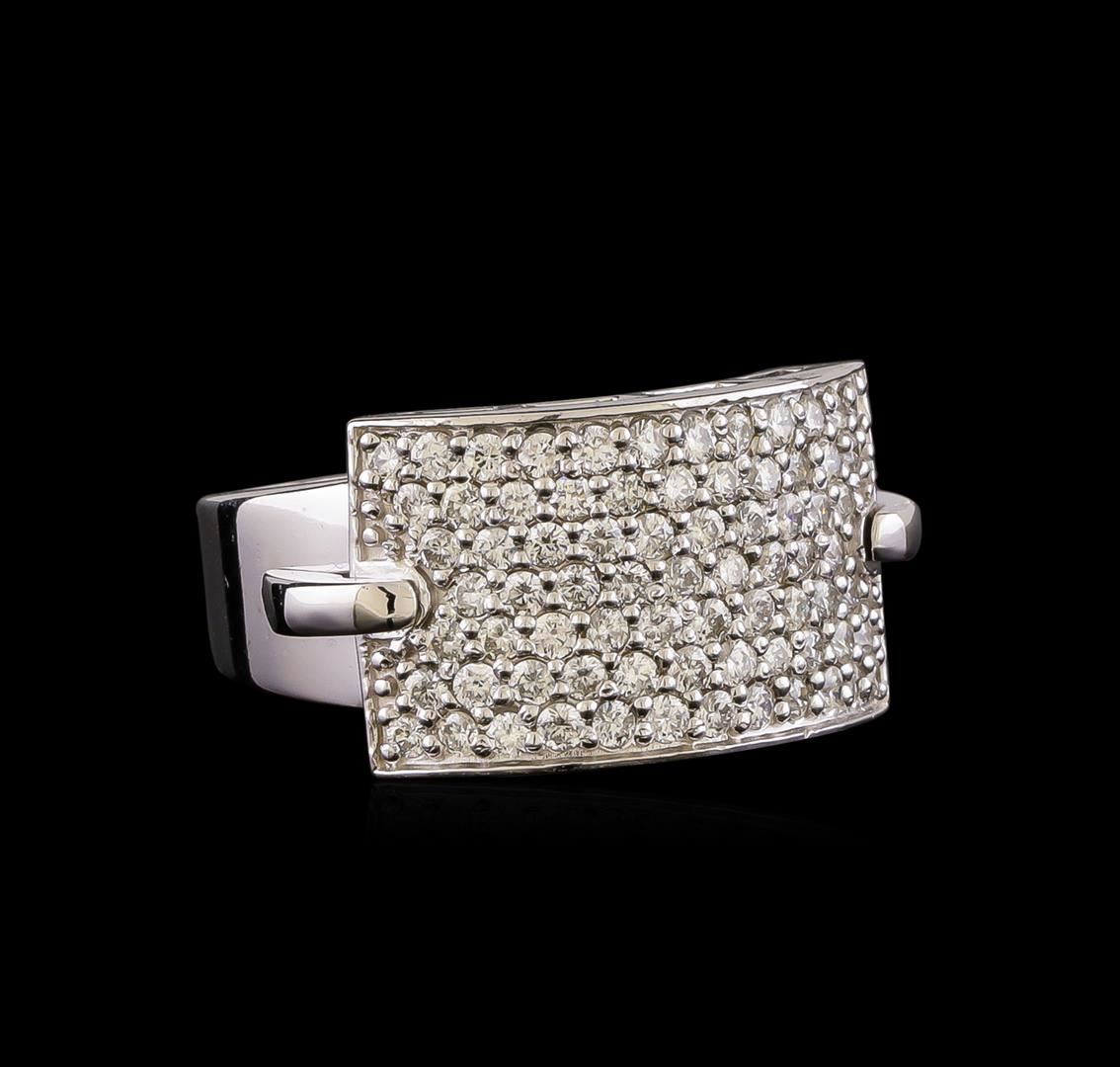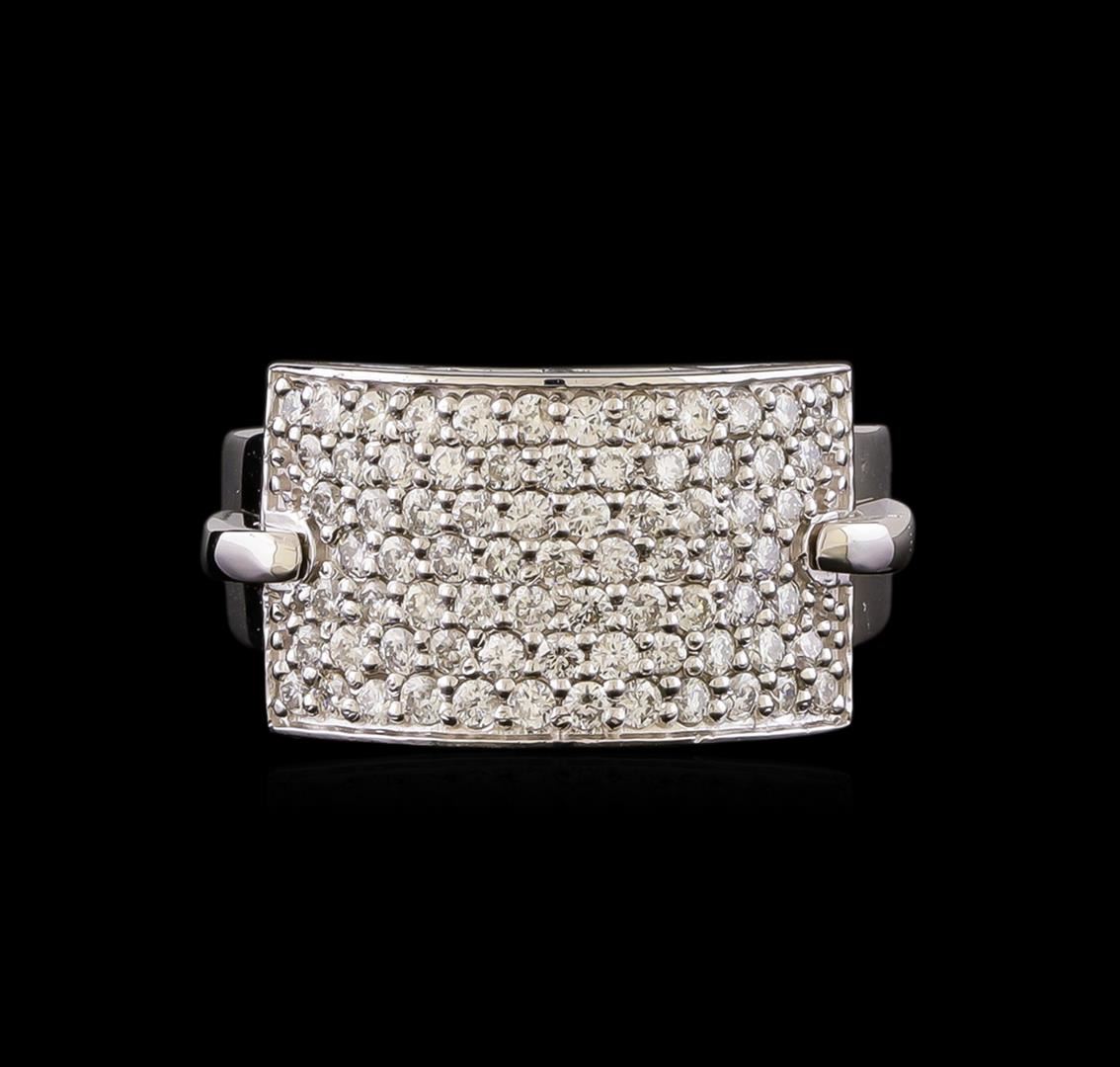 One electronically tested 14KT white gold ladies combination cast & assembled diamond ring with a tapered shank with a bright polish finish. Identified with markings of "14K". Condition is new. Containing: Seventy-Five prong set round brilliant cut diamonds, measuring 1.50 - 1.50 x 0.90mm (depth est.) approximate total weight of 75 Stones = 0.92ct. Clarity: SI-2 to I-1. Color: H - I, Cut is Good. All diamonds are graded in the mounting, unless otherwise stated. Total Weight of Diamonds 0.92ct. Total Weight of Ring 8.10 grams. GGL Appraised at $5,125.00.
