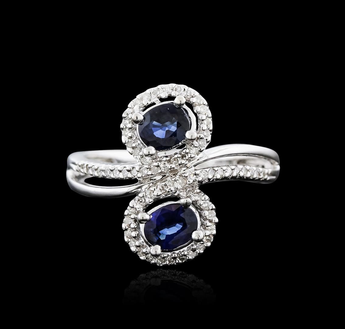 One ring featuring: 14KT white gold weighing 5.37 grams containing two oval cut sapphires weighing a total of 0.92ct and round cut diamonds weighing a total of 0.24ct.