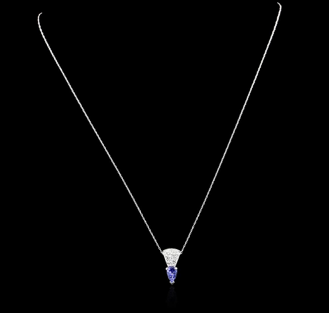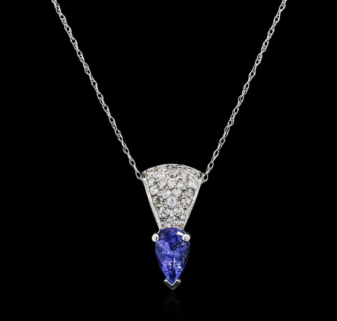 One pendant with chain featuring: 14KT white gold weighing 1.90 grams containing one tanzanite with a total weight of 0.92ct and round diamonds with a total weight of 0.22cts.