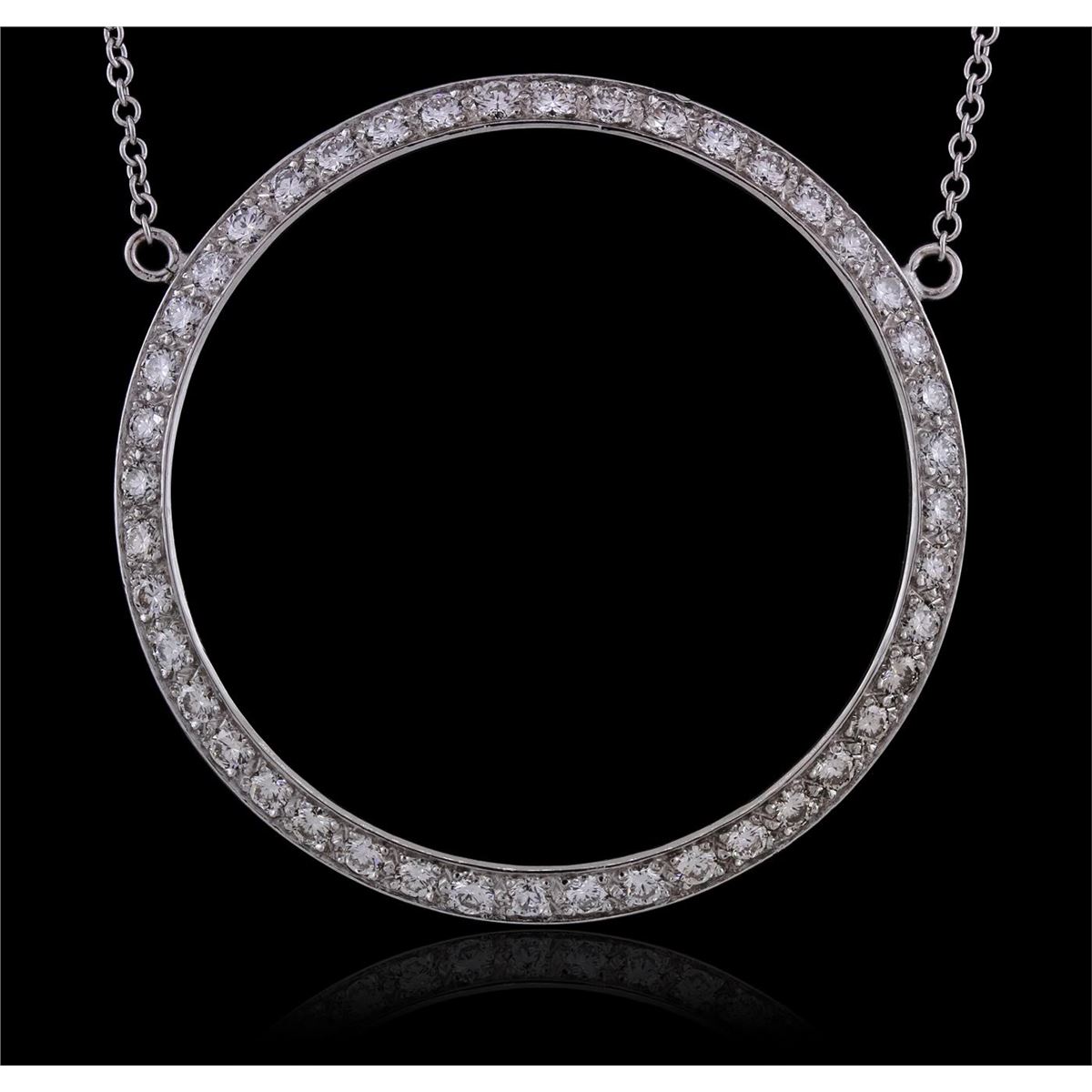 One electronically tested 14KT white gold Ladies combination cast & assembled pendant & chain 16.0" long, small cable link with a lobster claw clasp with a bright polish finish. Condition is new. Identified with markings of "14K". Containing: Forty-Four prong set round brilliant cut diamonds, measuring 1.80 - 1.80 x 1.08mm (depth est.) approximate. Total Weight of 44 Stones = 0.94ct. Clarity: SI-1 to SI-2. Color: J - K, Cut is Good. All diamonds are graded in the mounting, unless otherwise stated. Total Weight of Diamonds 0.94ct. Total Weight of Pendant & Chain 8.50 grams.. GGL Appraised at $5,340.00.