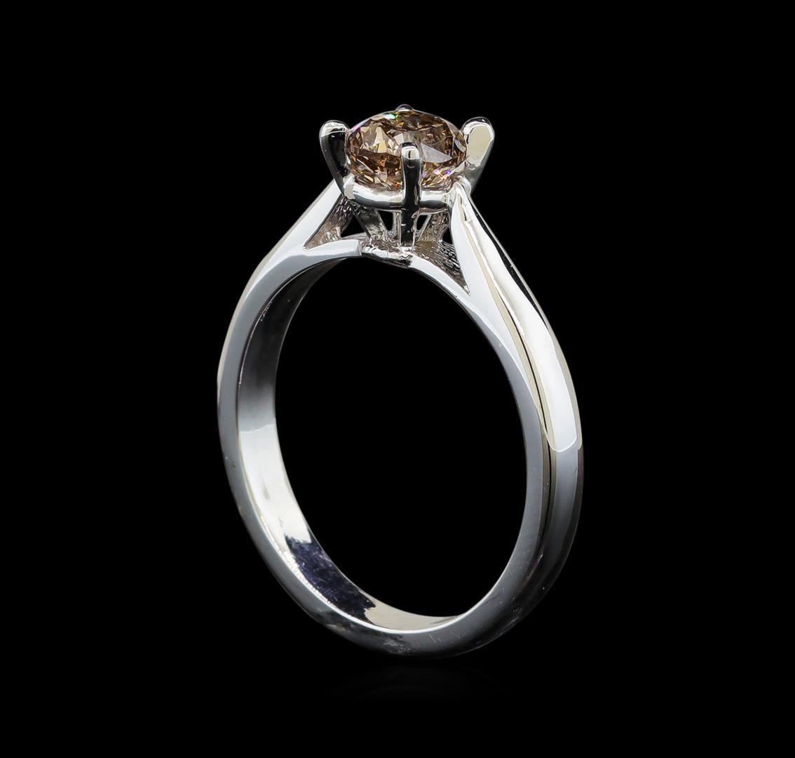 One electronically tested 14KT white gold ladies cast diamond solitaire ring with a flat shank with rounded edges with a bright polish finish. Identified with markings of "14K". Condition is new. Containing: One prong set oval shaped cut diamond, measuring 6.00 x 5.30 x 3.34mm (depth est.) exact weight 0.95ct. Clarity: SI-1, Cut is Good. Diamonds are graded in the mounting, unless otherwise stated. Total Weight of Diamonds 0.95ct. Total Weight of Solitaire Ring 3.70 grams. GGL Appraised.