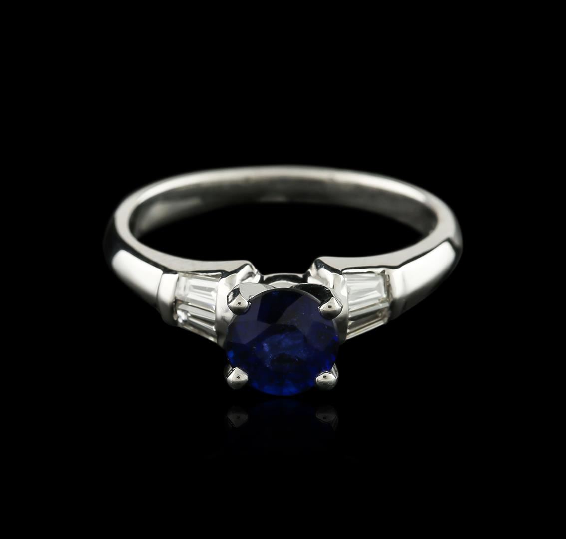One ring featuring: 14KT white gold weighing 3.06 grams containing one sapphire center stone with a total weight of 0.95ct and diamonds with a total weight of 0.16ct.