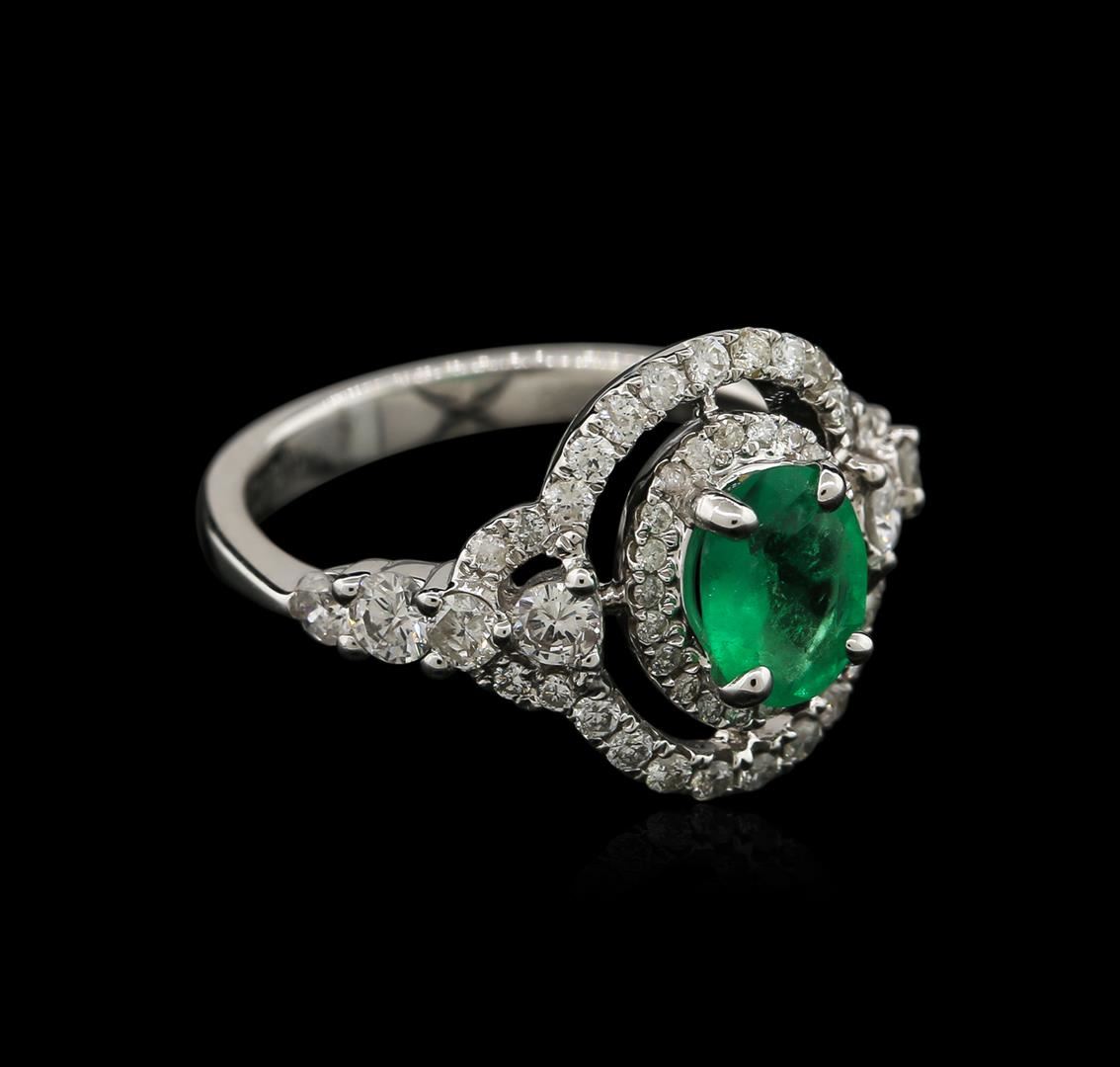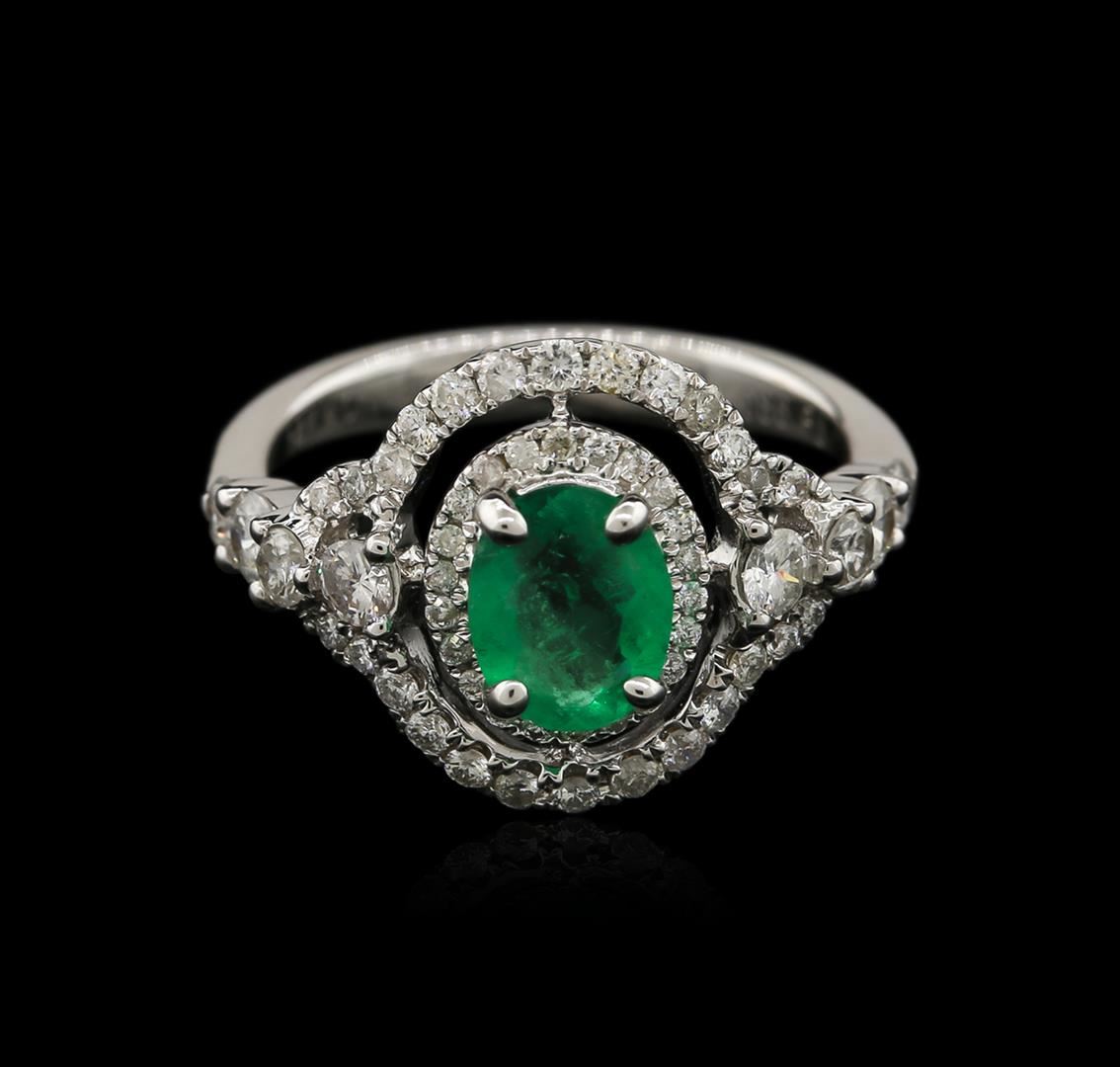 One ring featuring: 14KT white gold weighing 3.85 grams containing one emerald center stone with a total weight of 0.97ct and 56 round diamonds with a total weight of 0.86ct.