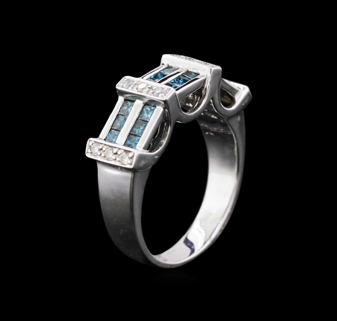 One ring featuring: 14KT white gold weighing 6.14 grams containing 18 blue diamonds with a total weight of 0.83ct and 12 round diamonds with a total weight of 0.15ct.