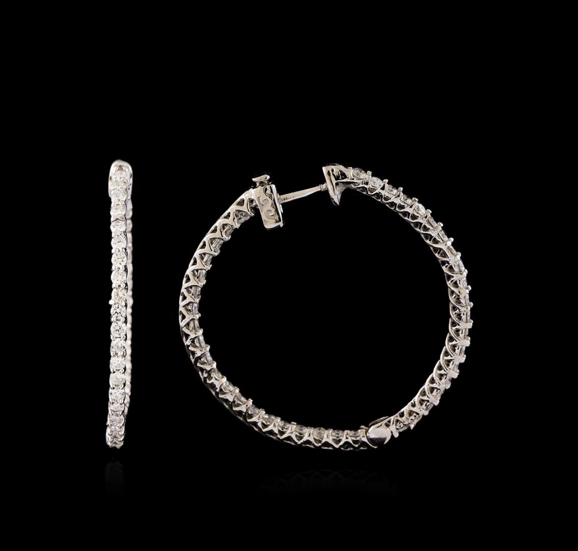 One pair electronically tested 14KT white gold ladies combination cast & assembled hoop earrings with hinged clip backs with a bright polish finish. Condition is new. Containing: Eighty prong set round brilliant cut diamonds, measuring 1.50 - 1.50 x 0.90mm (depth est.) approximate total weight of 80 Stones = 0.99ct. Clarity: SI-2 to I-1. Color: I - J, Cut is Good. All diamonds are graded in the mounting, unless otherwise stated. Total Weight of Diamonds 0.99ct. Total Weight of Earrings 7.00 grams. GGL Appraised at $4,930.00.