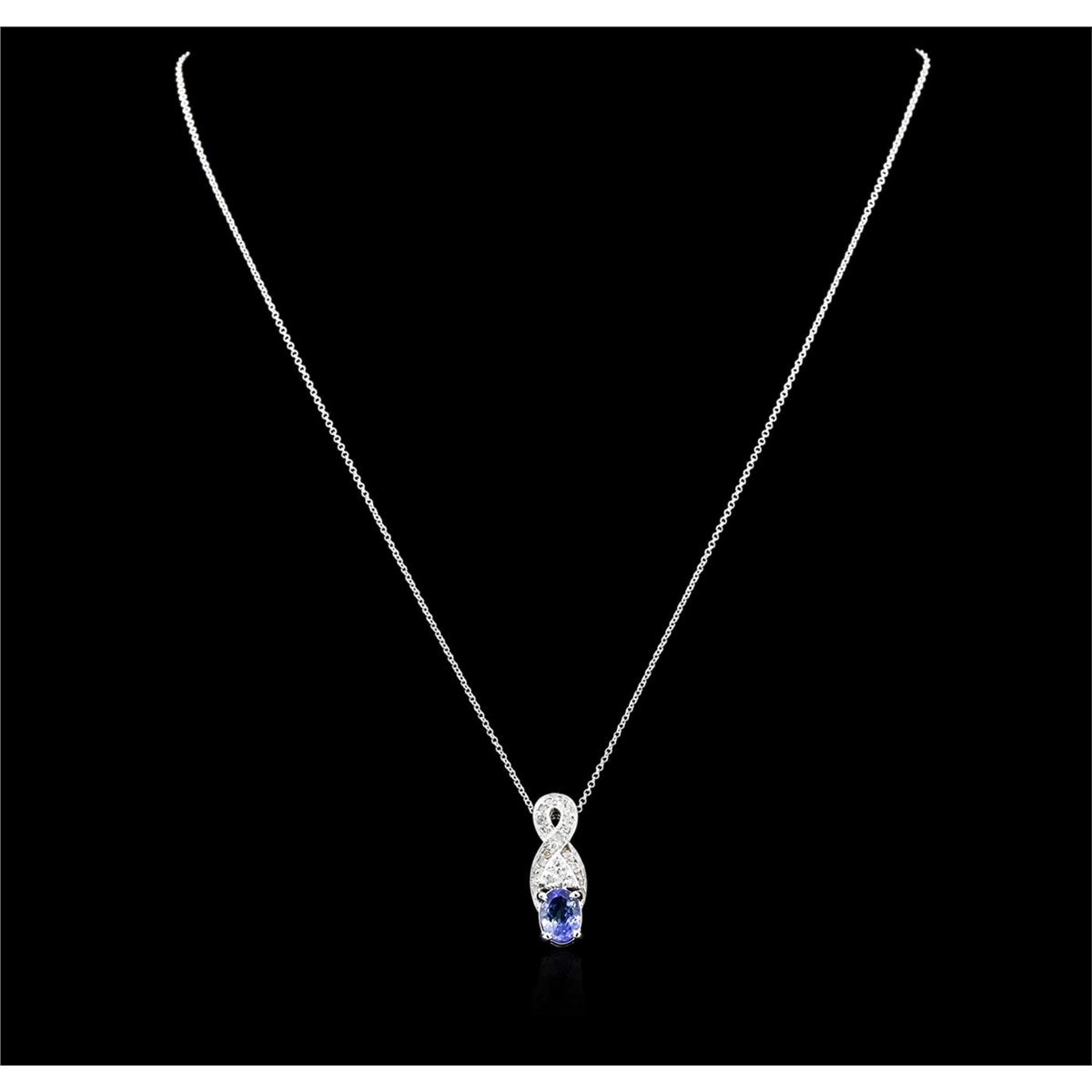 One pendant with chain featuring: 14KT white gold weighing 3.38 grams containing one sapphire with a total weight of 0.99ct and round diamonds with a total weight of 0.19cts.