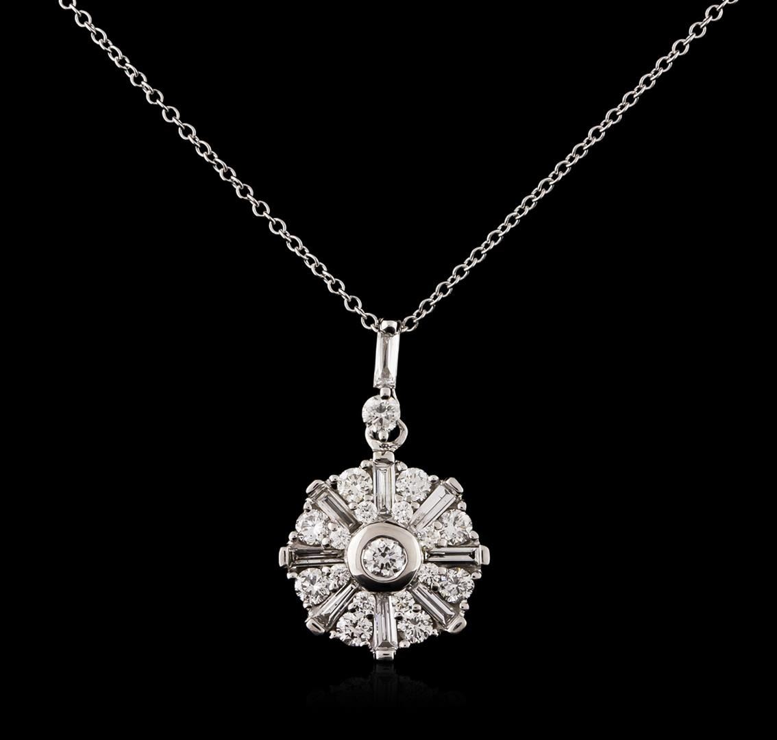 One pendant with chain featuring: 14KT white gold weighing 4.20 grams containing diamonds with a total weight of 1.00ct.
