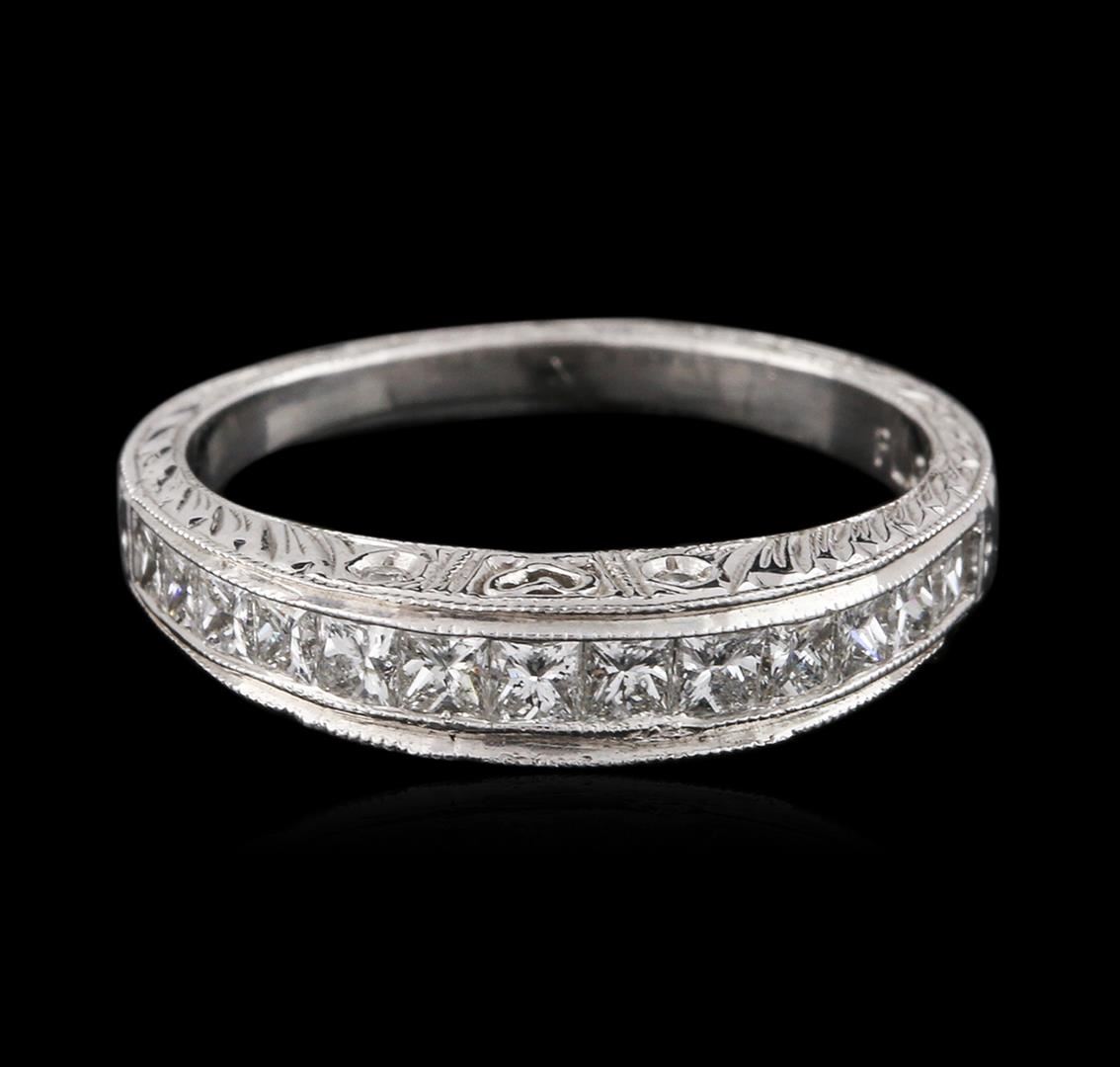 One ring featuring: 14KT white gold weighing 5.40 grams containing channel set princess cut diamonds with a total weight of 1.00ct.