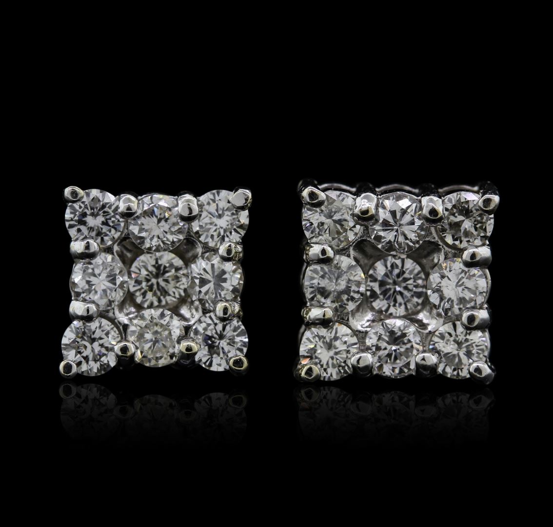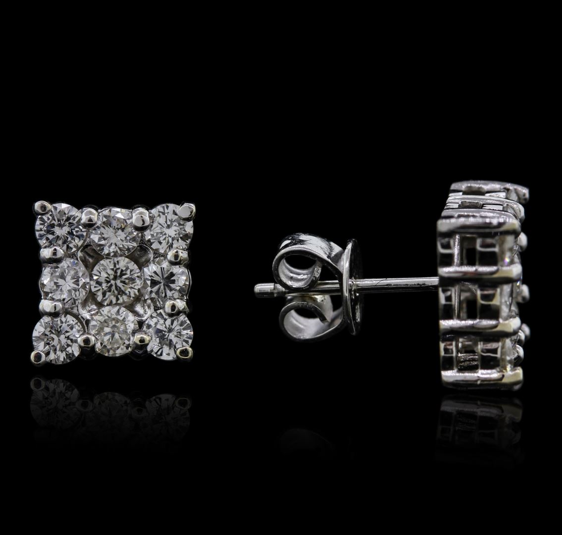 One pair of earrings featuring: 14KT white gold weighing 2.94 grams containing diamonds with a total weight of 1.00ct.