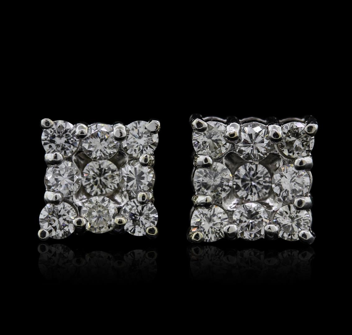 One pair of earrings featuring: 14KT white gold weighing 2.94 grams containing diamonds with a total weight of 1.00ct.