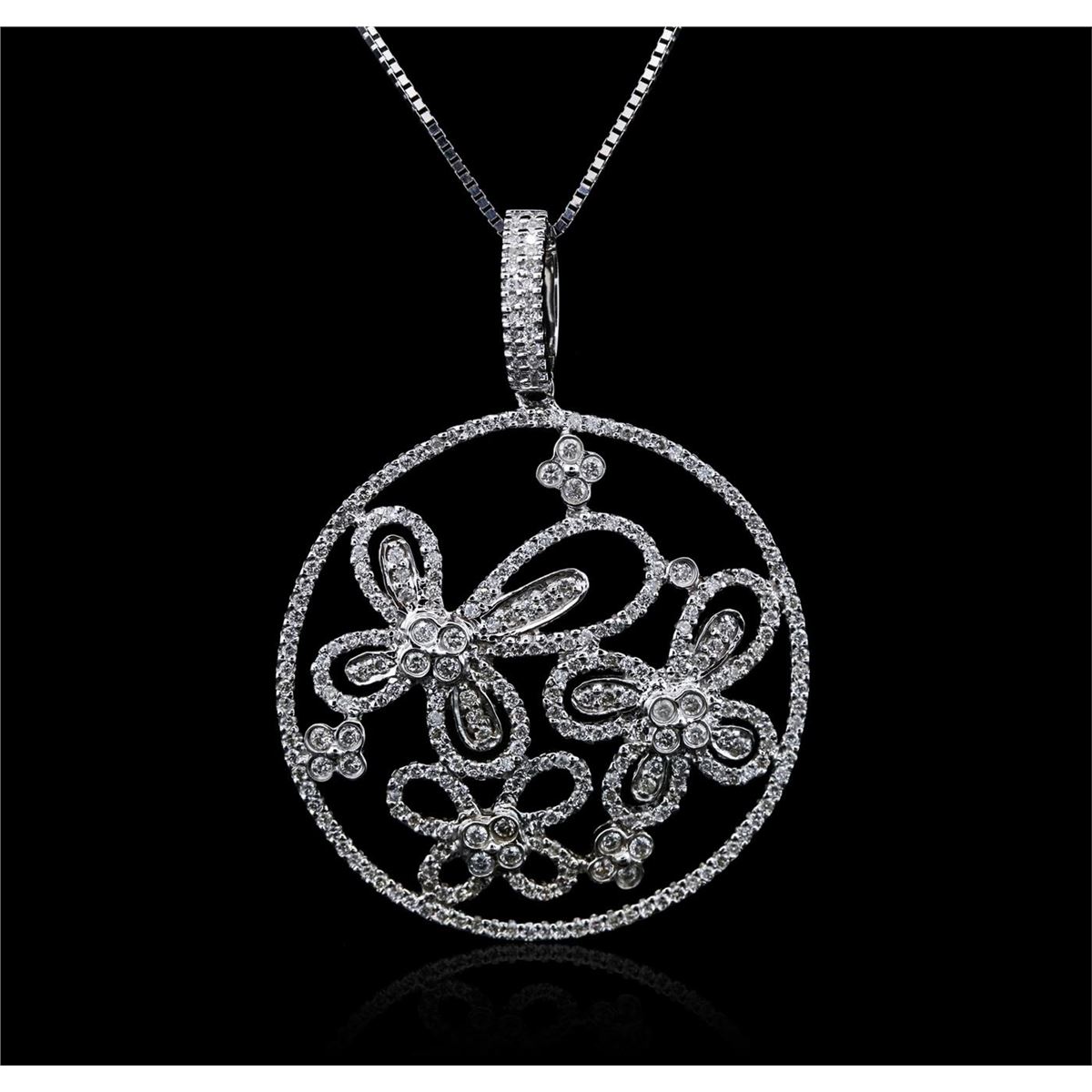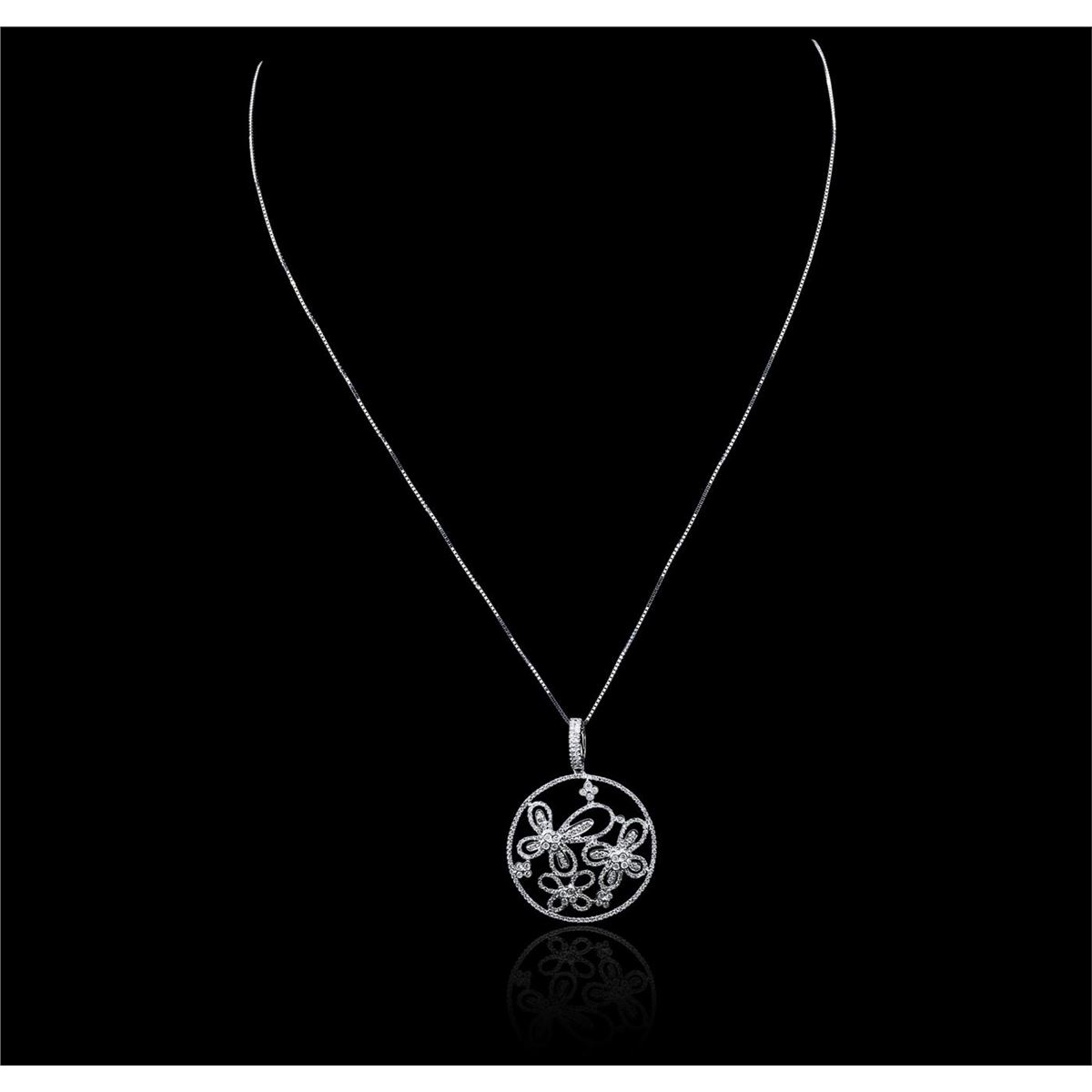 One electronically tested 14KT white gold ladies combination cast & assembled diamond pendant & chain 18.0" long, box link with a spring ring clasp with a bright polish finish. Identified with markings of "14K". Condition is new. Containing: Two Hundred Ninety-Nine prong set round brilliant cut diamonds, measuring 1.20 - 1.00. x 0.66mm (depth est.) approximate total weight of 299 Stones = 1.00ct. Clarity: I-1 to I-2. Color: I - J, Cut is Good. All diamonds are graded in the mounting, unless otherwise stated. Total Weight of Diamonds 1.00ct. Total Weight of Pendant & Chain 7.80 grams. GGL Appraised at $4,455.00.