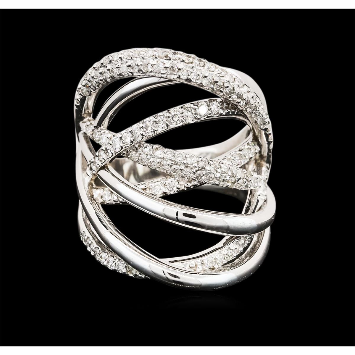 One electronically tested 14KT white gold ladies cast diamond ring with a bright polish finish. Identified with markings of "585". Condition is new. Containing: One Hundred Twenty-Five prong set round brilliant cut diamonds, measuring 1.30 - 1.30 x 0.78mm (depth est.) approximate total weight of 125 Stones = 1.00ct. Clarity: I-1 to I-2. Color: J - K, Cut is Good. All diamonds are graded in the mounting, unless otherwise stated. Total Weight of Diamonds 1.00ct. Total Weight of Ring 9.80 grams. GGL Appraised at $4,435.00.