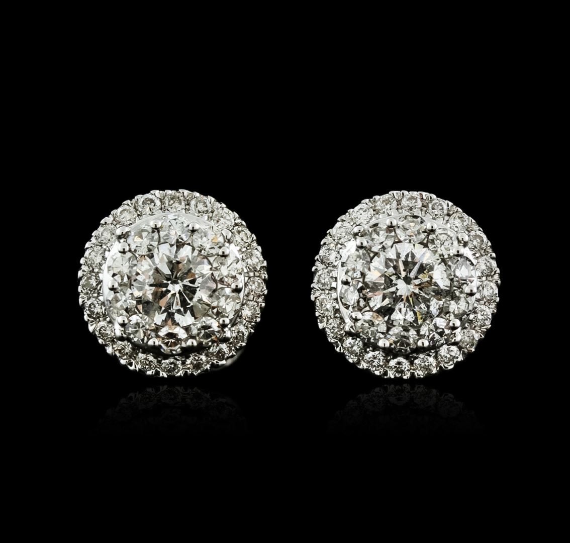 One pair of stud earrings featuring: 14KT white gold weighing 2.13 grams containing diamonds with a total weight of 1.00ct.