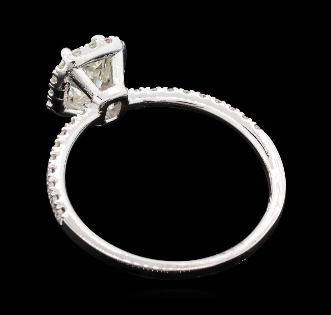 One electronically tested 14KT white gold lady's cast wedding ring with a halo with a bright polish finish. The featured lady's ring has a shank measuring 1.52 millimeters wide. Identified with markings of "14K". Condition is new, good workmanship. Containing: One prong set radiant shaped cut diamond, measuring 5.15 x 4.26 x 3.78mm (depth est.) approximate weight of 0.71ct. Graded in the setting. Color J-K, Clarity VS-1, Cut Very Good. Thirty-Four prong set round brilliant cut diamonds, measuring 1.40 - 1.30 x 0.81mm (depth est.) approximate total weight of 34 Stones = 0.30 ct. Graded in the setting. Color H-I, Clarity SI-1 - SI-2, Cut is Good. Total Weight of Diamonds = 1.01ctw. Total Weight of Ring 1.90gm. GAS Appraised.