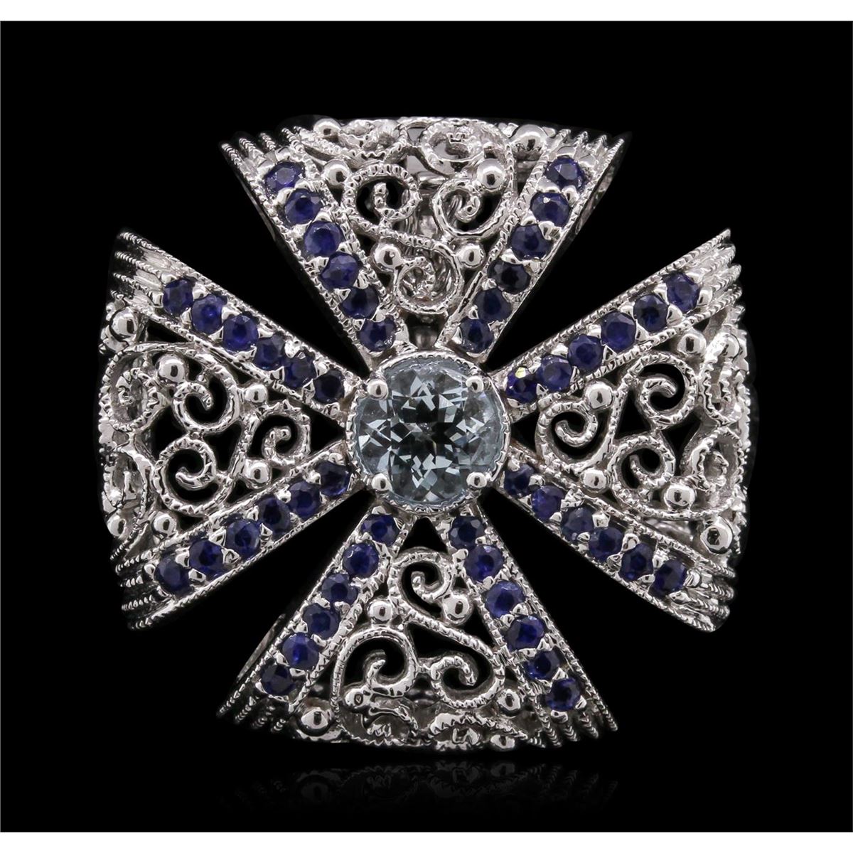 One electronically tested 14KT white gold Ladies combination cast & assembled pendant with a bright polish finish. Condition is new. Containing: One bezel set round modified brilliant cut natural aquamarine, measuring 6.50 - 6.50 x 4.23 mm, approximate weight of 1.01ct., clarity is eye clean, type I, light, slightly grayish, blue color, (GIA B 3/2), cut is very good. Forty-eight bead set round modified brilliant cut natural blue sapphires, measuring 1.80 - 1.80 x 1.17 mm, approximate. Total Weight of 1.44ct., clarity is heavily included, type II, dark, moderately strong, blue color, (GIA B 7/4), cut is good. Colored gemstones are presumed to have been subjected to commonly used color/clarity enhancement processes. Total Weight of Colored Stones 2.45ct. Total Weight of Pendant 11.50 grams.