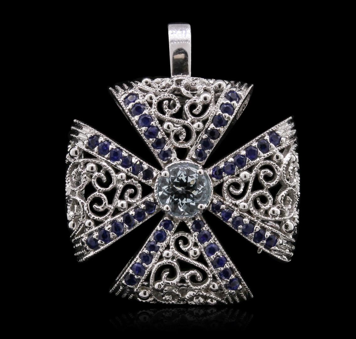 One electronically tested 14KT white gold Ladies combination cast & assembled pendant with a bright polish finish. Condition is new. Containing: One bezel set round modified brilliant cut natural aquamarine, measuring 6.50 - 6.50 x 4.23 mm, approximate we