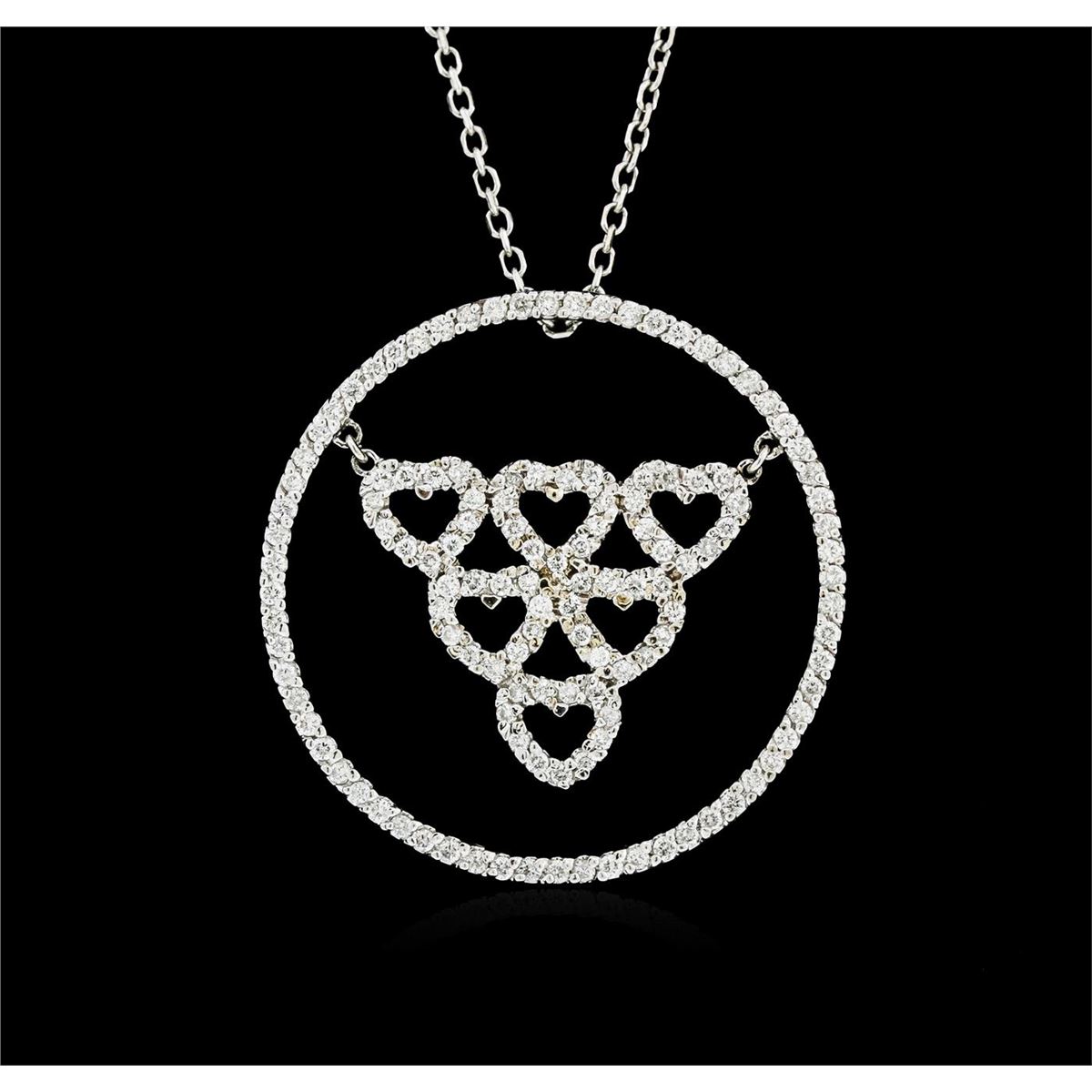 One pendant with chain featuring: 14KT white gold weighing 7.80 grams containing prong set diamonds with a total weight of 1.01ct.