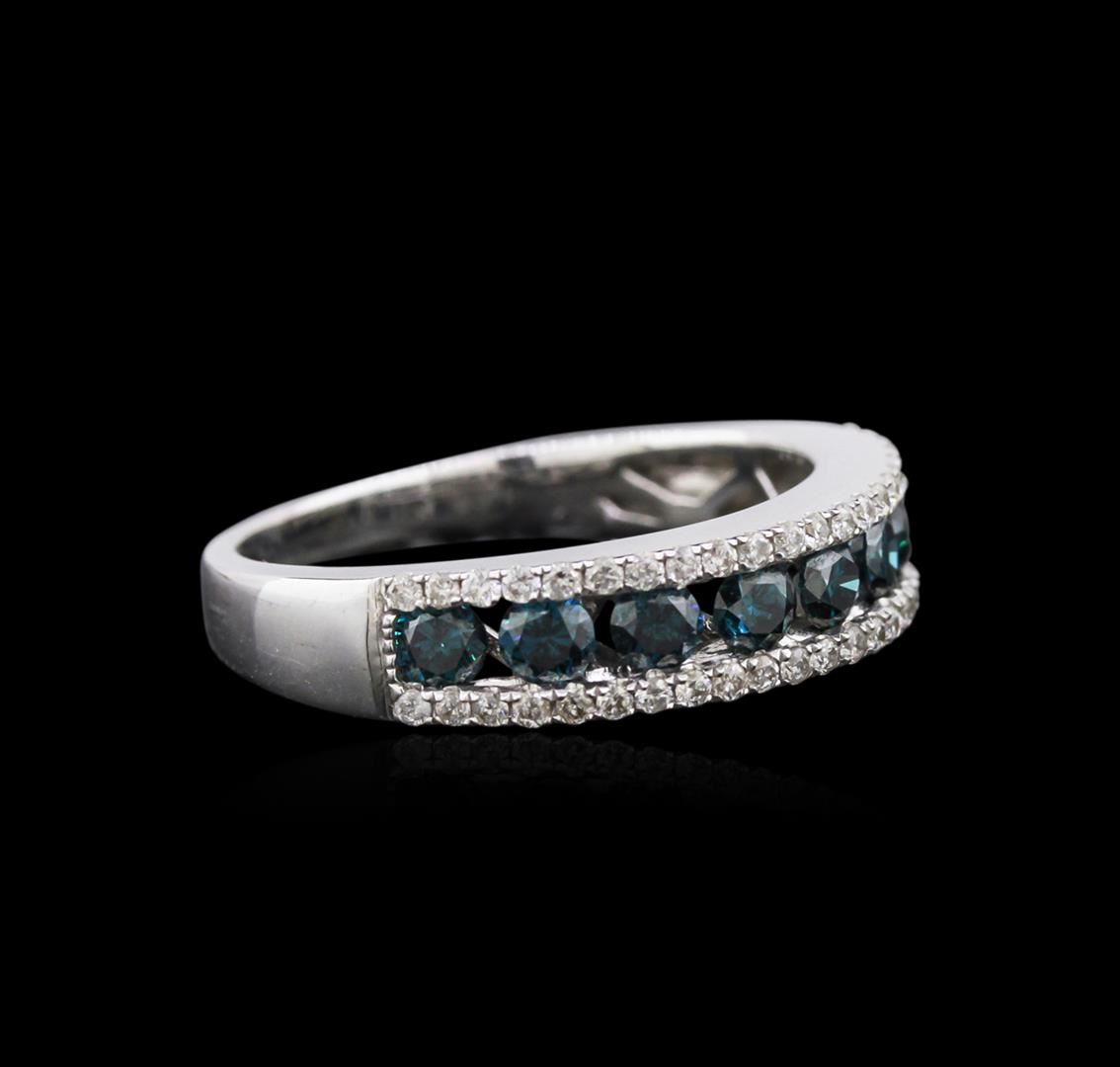One ring featuring: 14KT white gold weighing 3.18 grams containing 8 blue diamonds with a total weight of 0.80ct and 44 round diamonds with a total weight of 0.22ct.