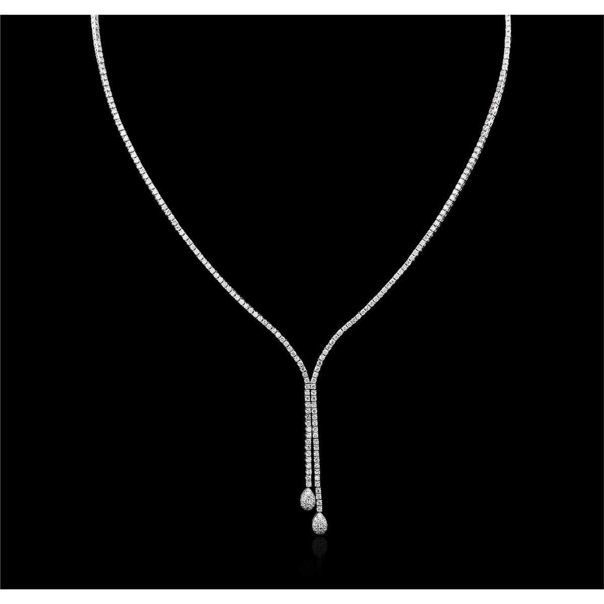 One electronically tested 14KT white gold ladies cast diamond necklace with a spring ring clasp with a bright polish finish. Measurements: 16" in length Identified with markings of "14K". Condition is new. Containing: Two Hundred Fourteen prong set round brilliant cut diamonds, measuring 1.20 - 1.00 x 0.66mm (depth est.) approximate total weight of 214 Stones = 1.03ct. Clarity: SI-1 to SI-2. Color: I - J, Cut is Good. All diamonds are graded in the mounting, unless otherwise stated. Total Weight of Diamonds 1.03ct. Total Weight of Necklace 11.30 grams. GGL Appraised at $6,055.00.