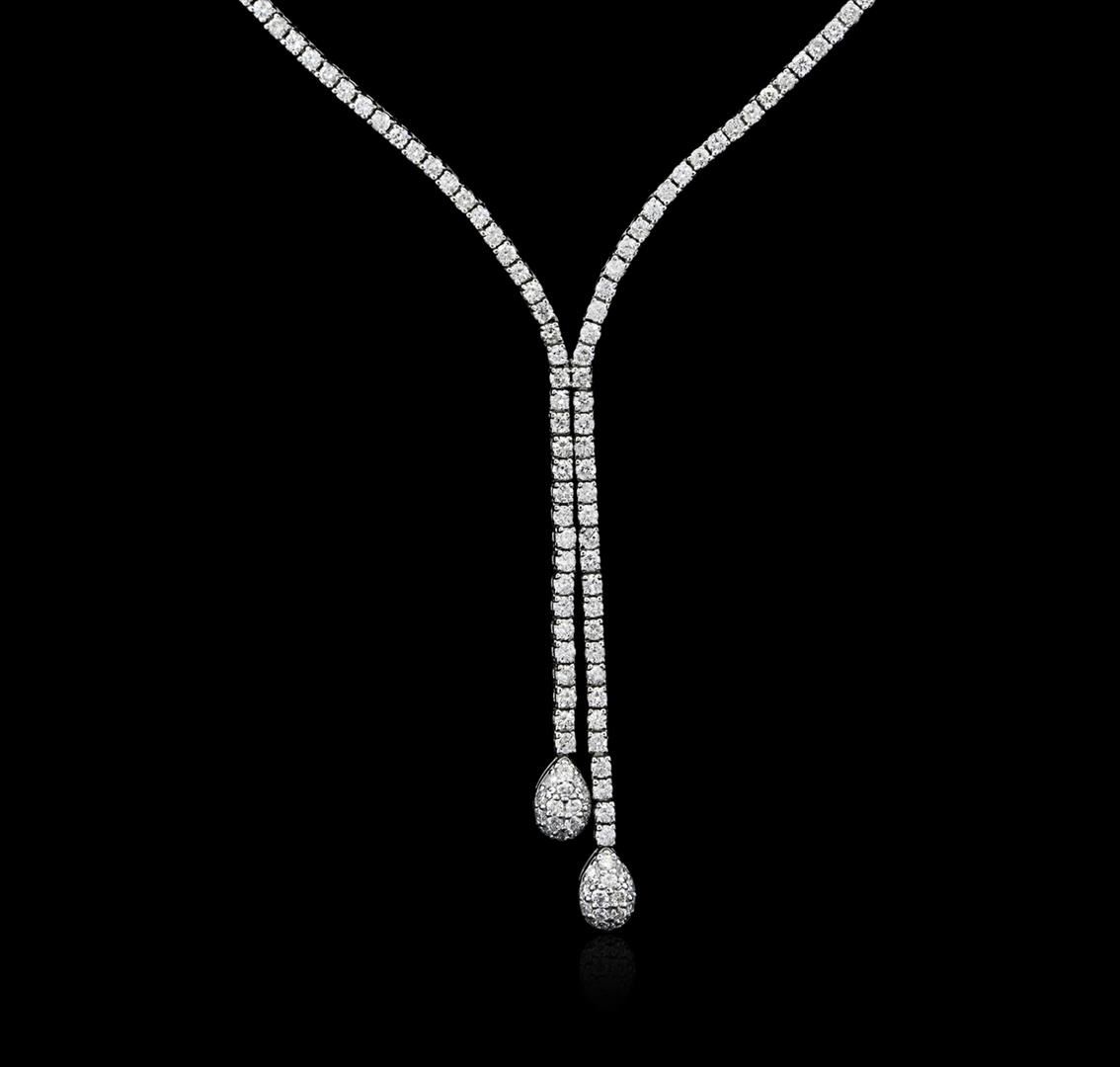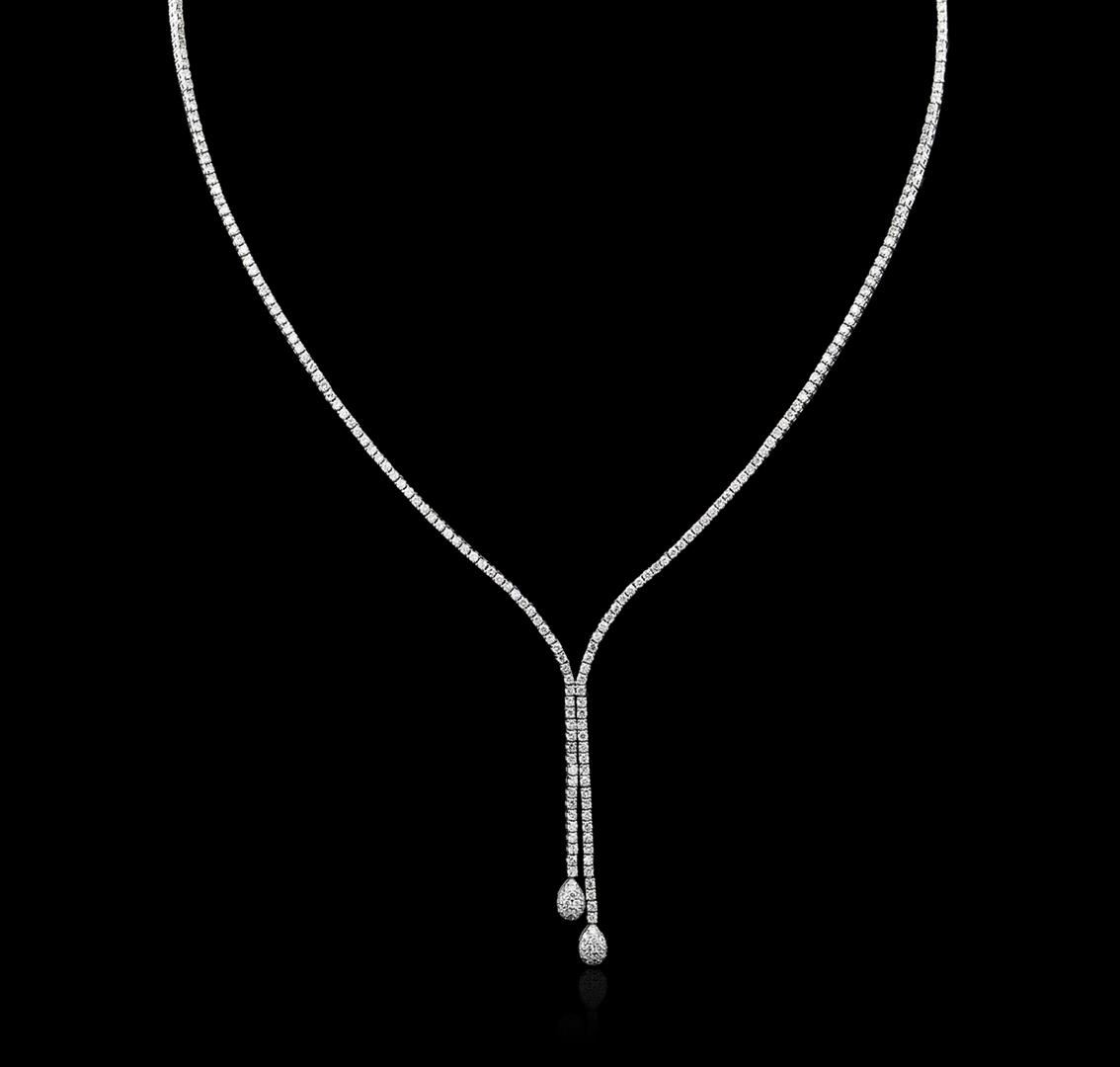 One electronically tested 14KT white gold ladies cast diamond necklace with a spring ring clasp with a bright polish finish. Measurements: 16" in length Identified with markings of "14K". Condition is new. Containing: Two Hundred Fourteen prong set round brilliant cut diamonds, measuring 1.20 - 1.00 x 0.66mm (depth est.) approximate total weight of 214 Stones = 1.03ct. Clarity: SI-1 to SI-2. Color: I - J, Cut is Good. All diamonds are graded in the mounting, unless otherwise stated. Total Weight of Diamonds 1.03ct. Total Weight of Necklace 11.30 grams. GGL Appraised at $6,055.00.