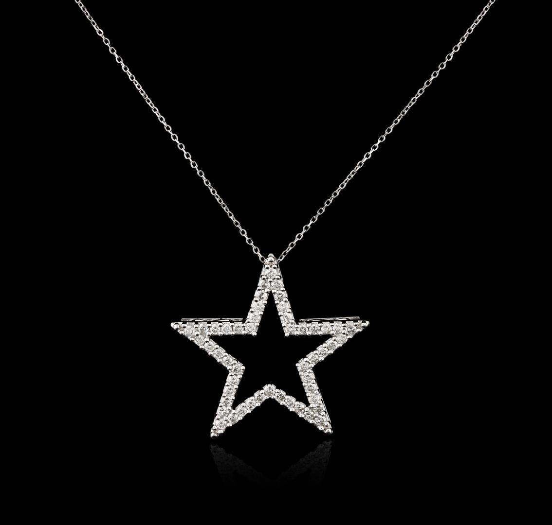 One star pendant with chain featuring: 14KT white gold weighing 5.40 grams containing diamonds with a total weight of 1.03ct.