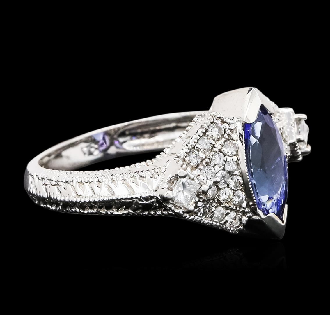 One ring featuring: 14KT white gold weighing 5.87 grams containing one tanzanite center stone with a total weight of 1.04ct and round diamonds with a total weight of 0.34cts.