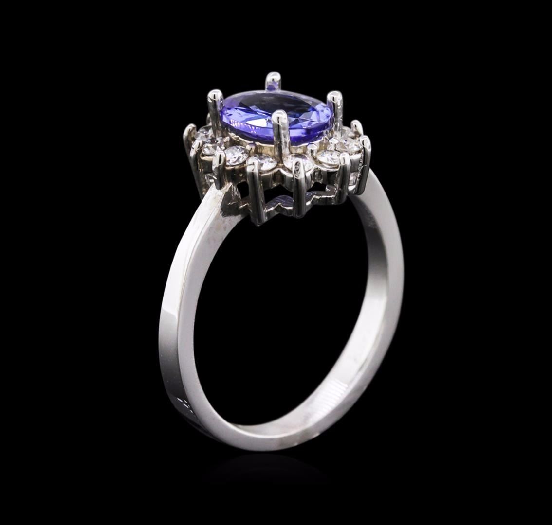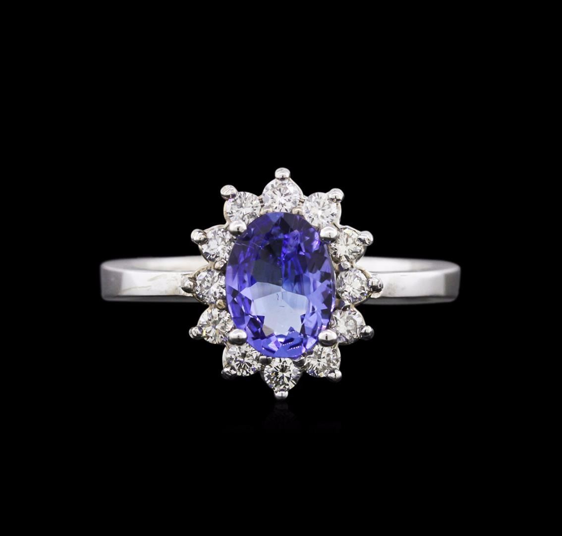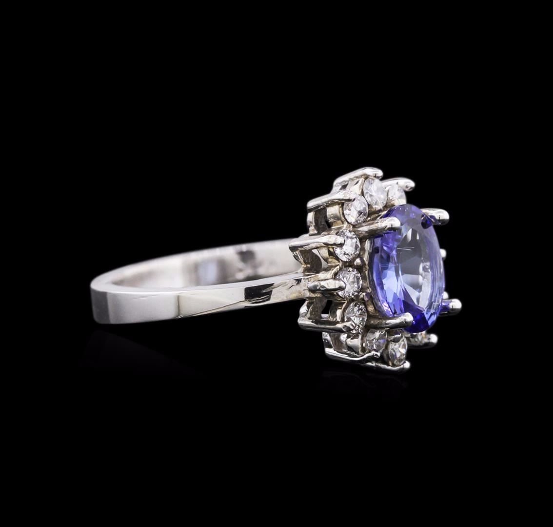 One ring featuring: 14KT white gold weighing 3.76 grams containing one tanzanite center stone with a total weight of 1.06ct and 12 diamonds with a total weight of 0.33ct.