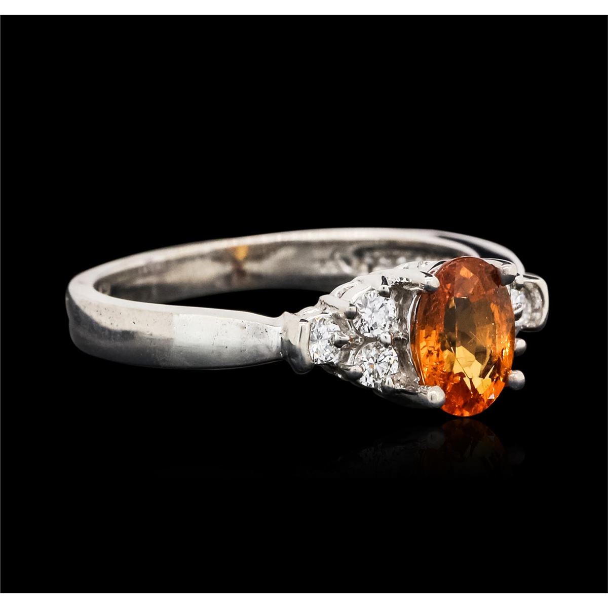 One ring featuring: 14KT white gold weighing 2.54 grams containing one spessartite center stone with a total weight of 1.09ct and round cut diamonds with a total weight of 0.21cts.