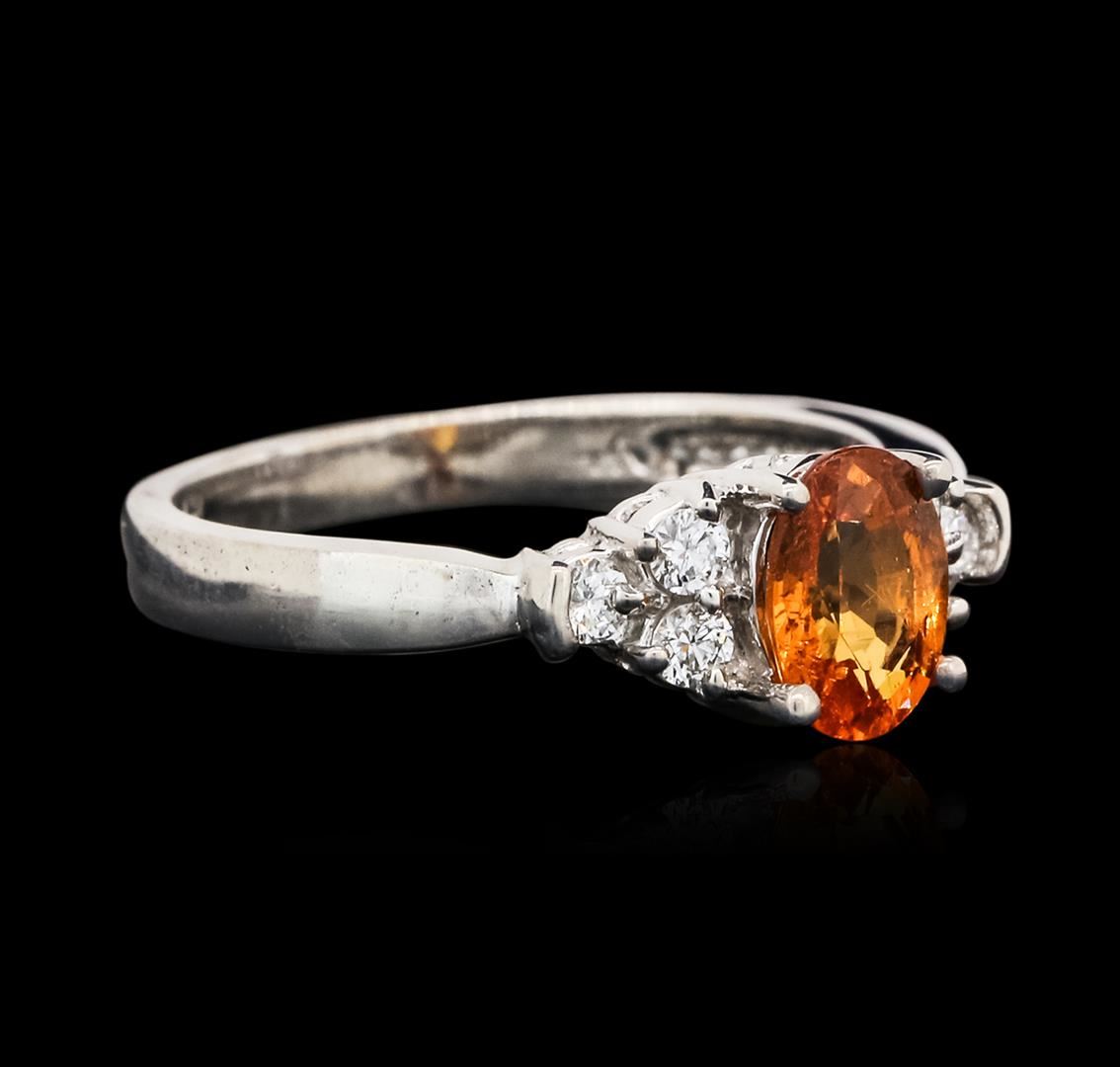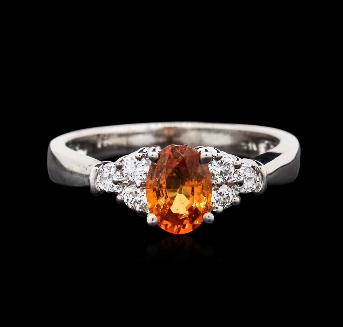 One ring featuring: 14KT white gold weighing 2.54 grams containing one spessartite center stone with a total weight of 1.09ct and round cut diamonds with a total weight of 0.21cts.