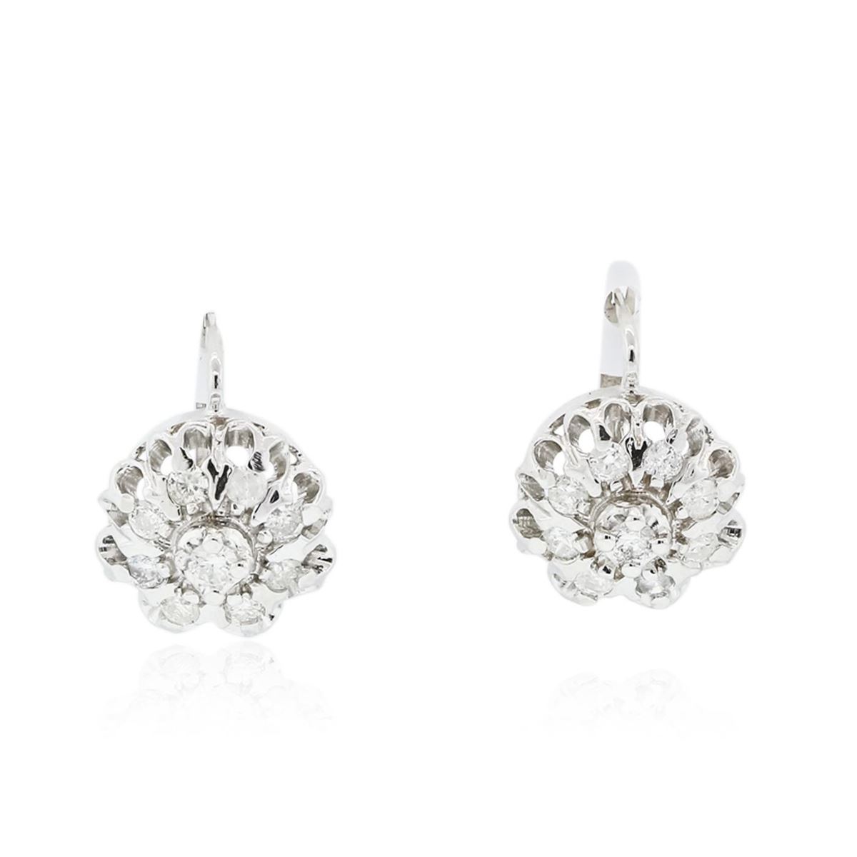 One pair electronically tested 14KT white gold ladies combination cast & assembled diamond earrings with hinged clip backs with a bright polish finish. Identified with markings of "14K". Condition is new. Containing: Eighteen prong set round brilliant cut diamonds, measuring 3.00 - 2.50 x 1.65mm (depth est.) approximate total weight of 18 Stones = 1.10ct. Clarity: I-1 to I-2. Color: H - I, Cut is Good. All diamonds are graded in the mounting, unless otherwise stated. Total Weight of Diamonds 1.10ct. Total Weight of Earrings 10.30 grams. GGL Appraised at $5,120.00.