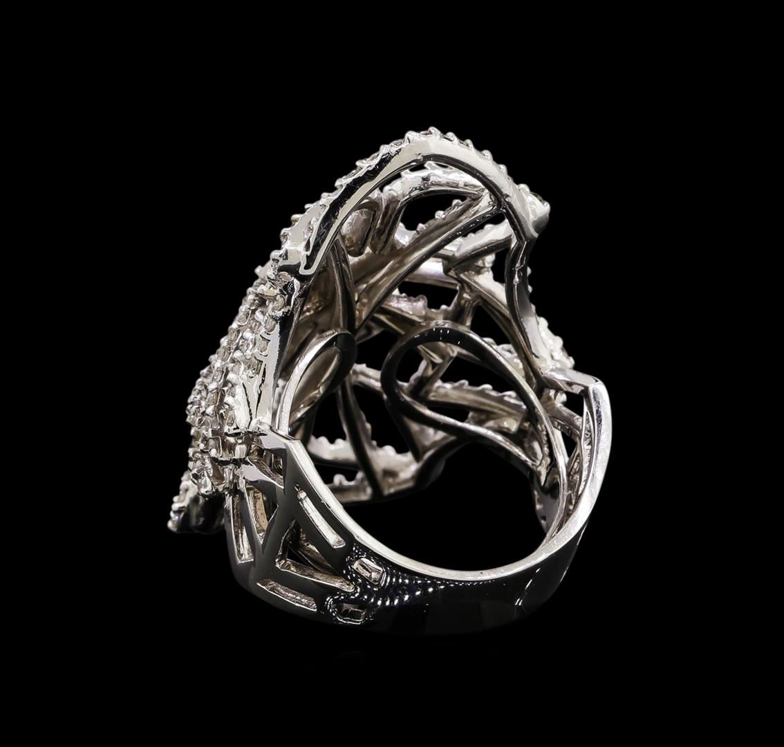 One electronically tested 14KT white gold ladies cast diamond ring with a bright polish finish. Identified with markings of "14K". Condition is new. Containing: Two Hundred Twenty-Four prong set round brilliant cut diamonds, measuring 2.10 - 1.10 x 0.96mm (depth est.) approximate total weight of 224 Stones = 1.11ct. Clarity: I-1 to I-2. Color: H - I, Cut is Good. All diamonds are graded in the mounting, unless otherwise stated. Total Weight of Diamonds 1.11ct. Total Weight of Ring 11.20 grams. GGL Appraised at $5,100.00.