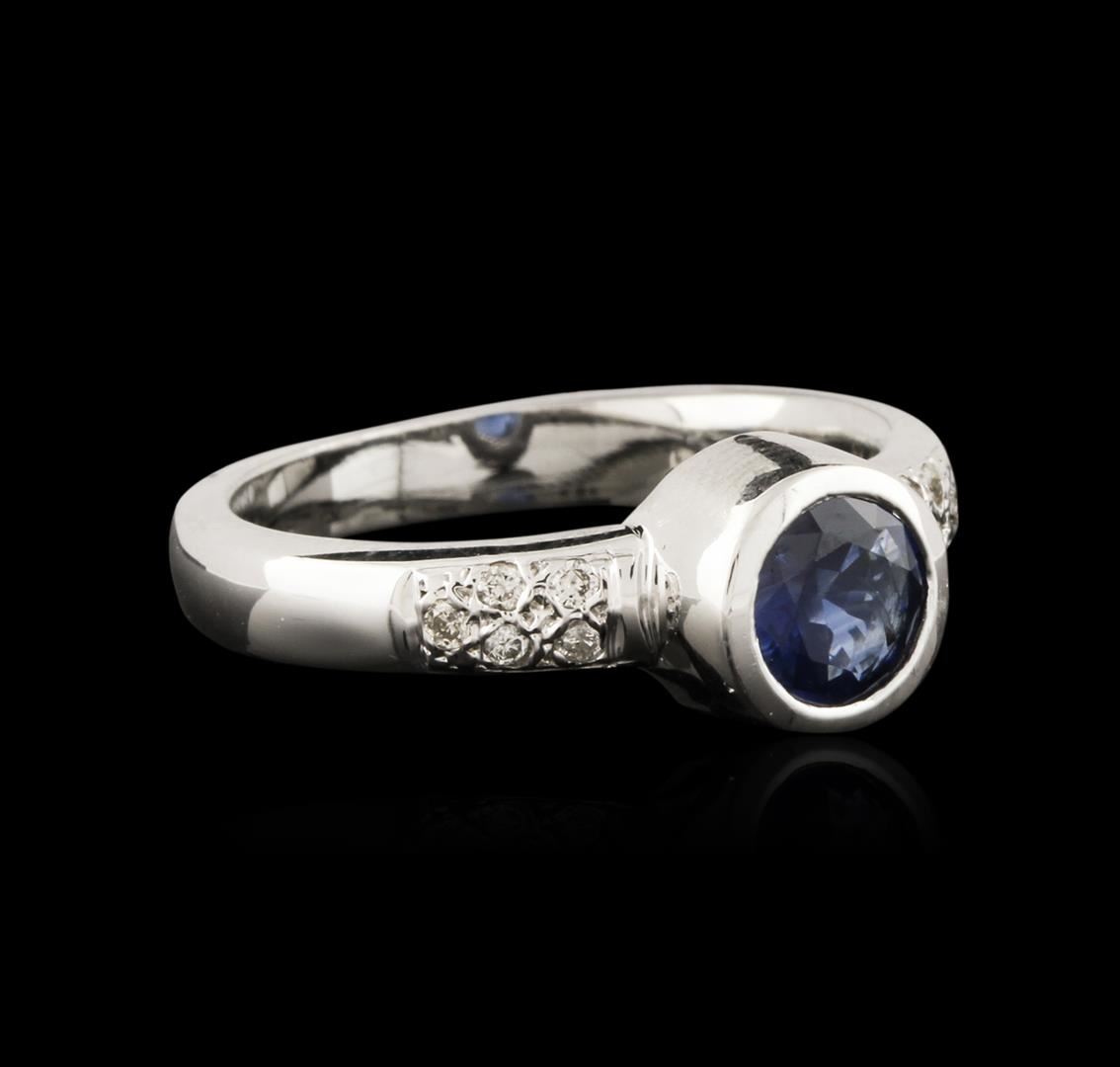 One ring featuring: 14KT white gold weighing 5.33 grams containing one round cut sapphire center weighing 1.12ct and diamonds weighing a total of 0.05ct.