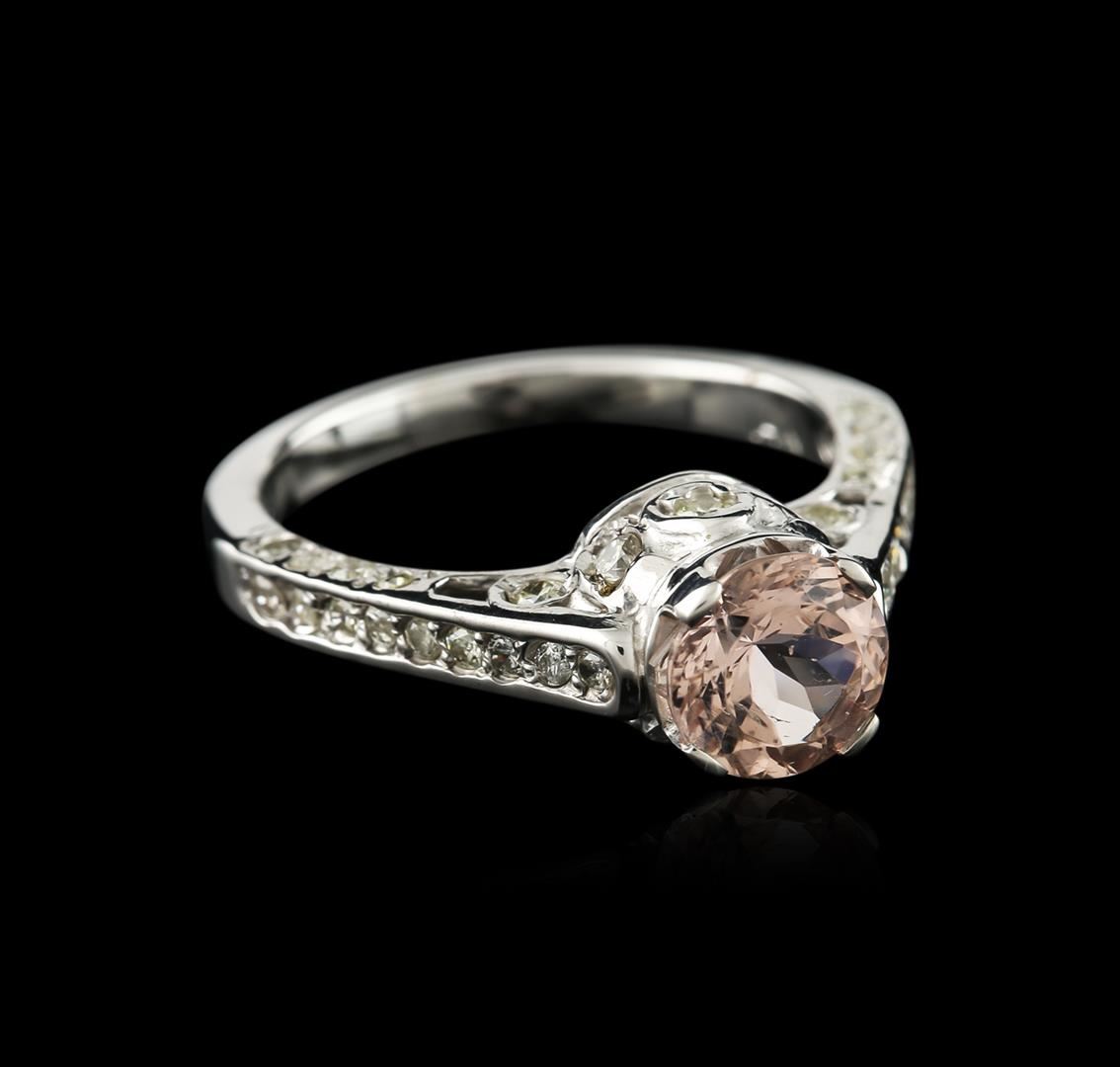 One ring featuring: 14KT white gold weighing 4.18 grams containing one morganite center stone with a total weight of 1.13ct and diamonds with a total weight of 0.35ct.