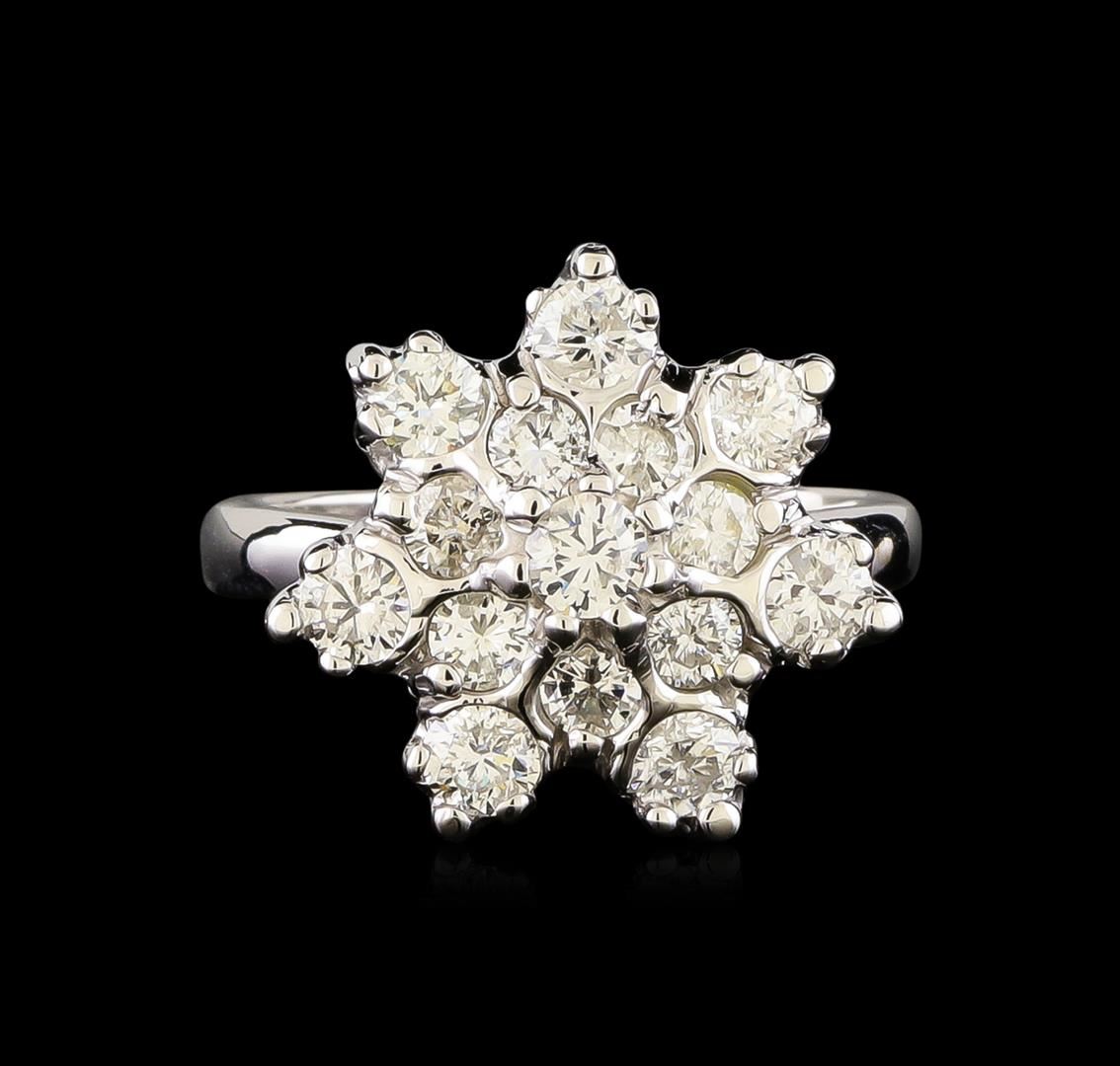 One electronically tested 14KT white gold ladies combination cast & die struck diamond ring with a flat shank with a bright polish finish. Identified with markings of "14K". Condition is new. Containing: Fifteen prong set round brilliant cut diamonds, measuring 3.00 - 2.50 x 1.65mm (depth est.) approximate total weight of 15 Stones = 1.14ct. Clarity: SI-2 to I-1. Color: J, Cut is Good. All diamonds are graded in the mounting, unless otherwise stated. Total Weight of Diamonds 1.14ct. Total Weight of Ring 5.90 grams. GGL Appraised at $4,570.00.
