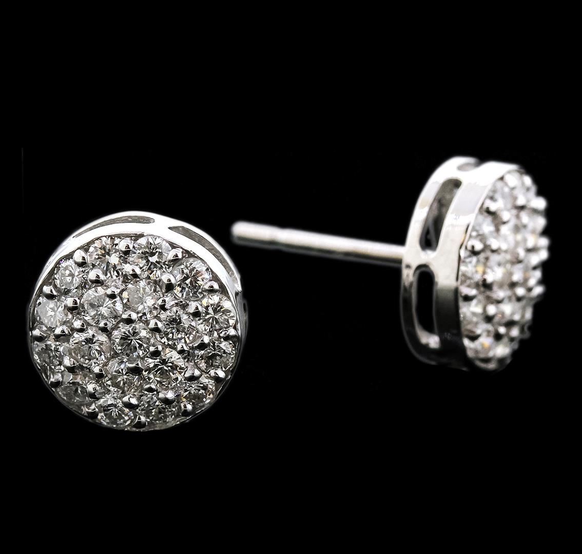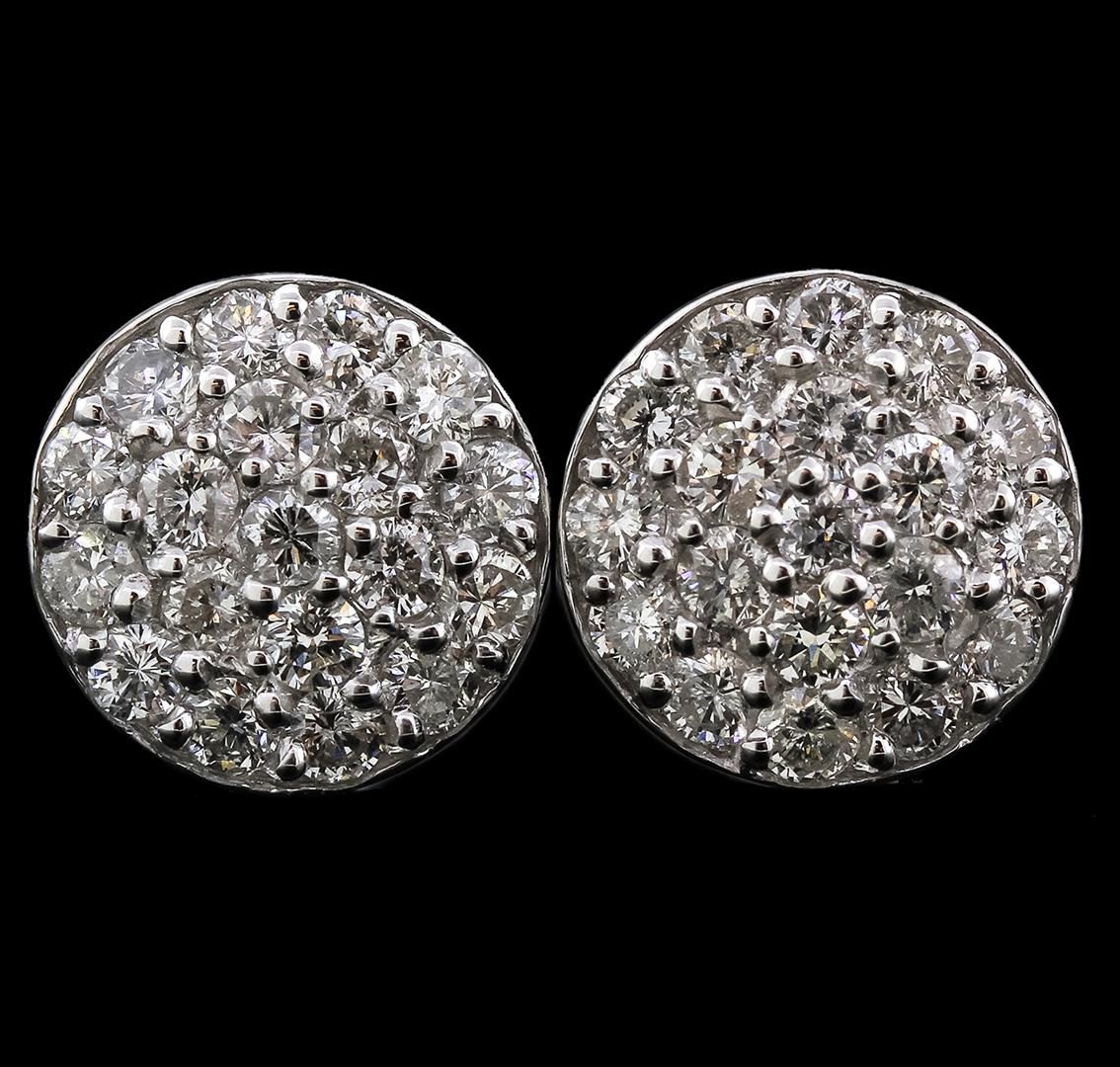 One pair of earrings featuring: 14KT white gold weighing 2.10 grams containing diamonds with a total weight of 1.14ct.