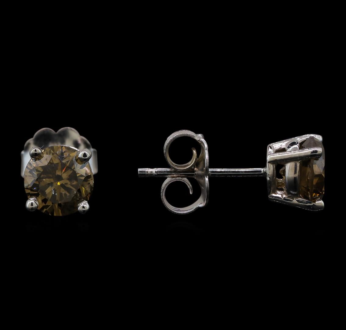One pair electronically tested 14KT white gold ladies cast diamond stud earrings with friction posts with a bright polish finish. Identified with markings of "14K". Condition is new. Containing: Two prong set round brilliant cut diamonds, measuring 5.40 - 5.40 x 3.24mm (depth est.) approximate total weight of 2 Stones = 1.15ct. Clarity: I-1, Cut is Good. Diamonds are graded in the mounting, unless otherwise stated. Total Weight of Diamonds 1.15ct. Total Weight of Stud Earrings 1.20 grams. GGL Appraised at $1,925.00.