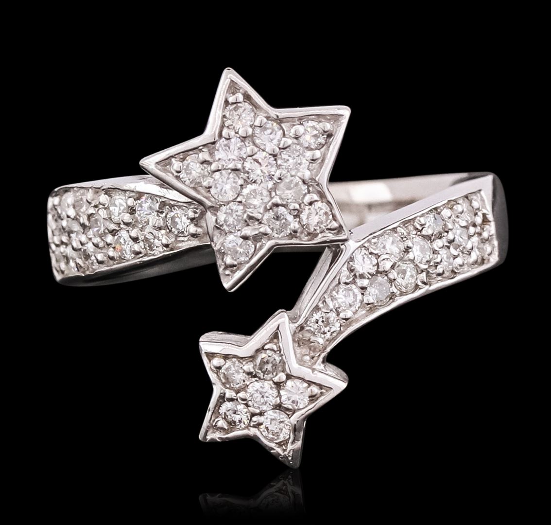 One two star ring featuring: 14KT white gold weighing 5.36 grams containing round cut diamonds with a total weight of 1.15cts.