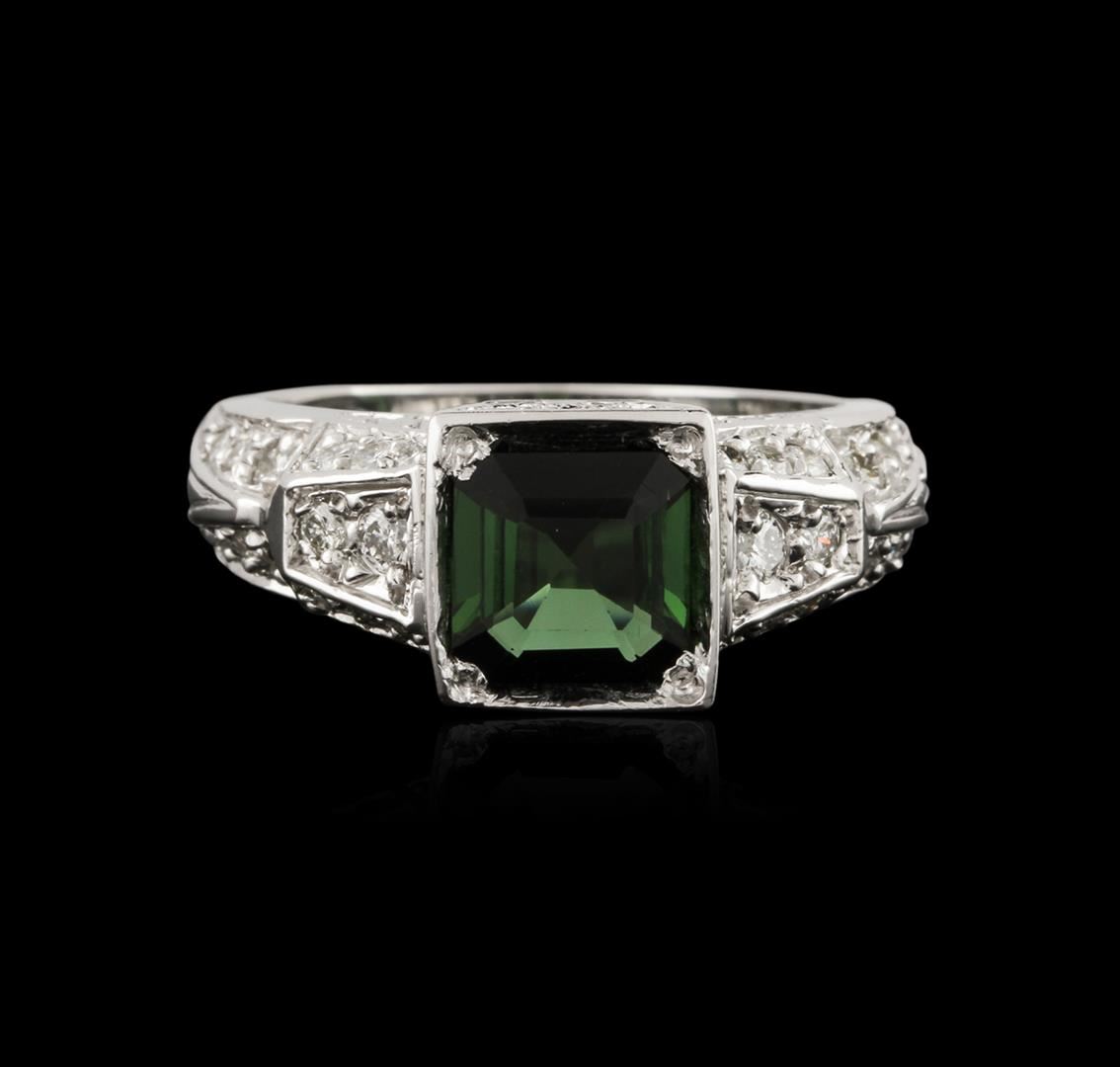 One ring featuring: 14KT white gold weighing 6.03 grams containing one green tourmaline center stone with a total weight of 1.17ct and pave set round diamonds with a total weight of 0.60ct.