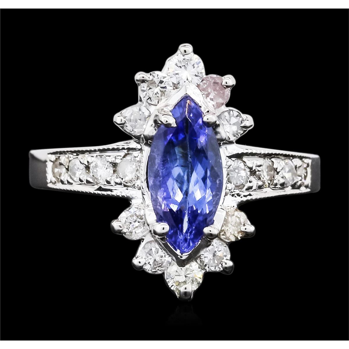One ring featuring: 14KT white gold weighing 5.30 grams containing one tanzanite center stone with a total weight of 1.18ct and round diamonds with a total weight of 0.65cts.