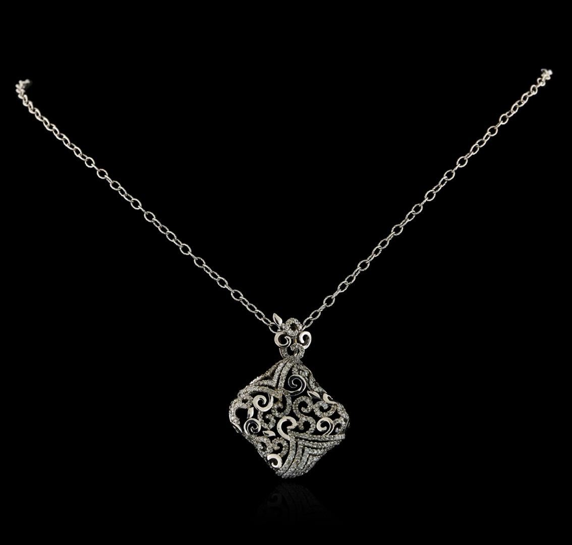 One electronically tested 14KT white gold ladies combination cast & assembled pendant & chain 17.0" long, light cable link with a lobster claw clasp with a bright polish finish. Identified with markings of "14K 585". Condition is new. Containing: Three Hundred Thirty-Three prong set round brilliant cut diamonds, measuring 1.00 - 1.00 x 0.60mm (depth est.) approximate total weight of 333 Stones = 1.20ct. Clarity: I-1 to I-3. Color: I - J, Cut is Good. All diamonds are graded in the mounting, unless otherwise stated. Total Weight of Diamonds 1.20ct. Total Weight of Pendant & Chain 12.60 grams. GGL Appraised at $8,490.00.