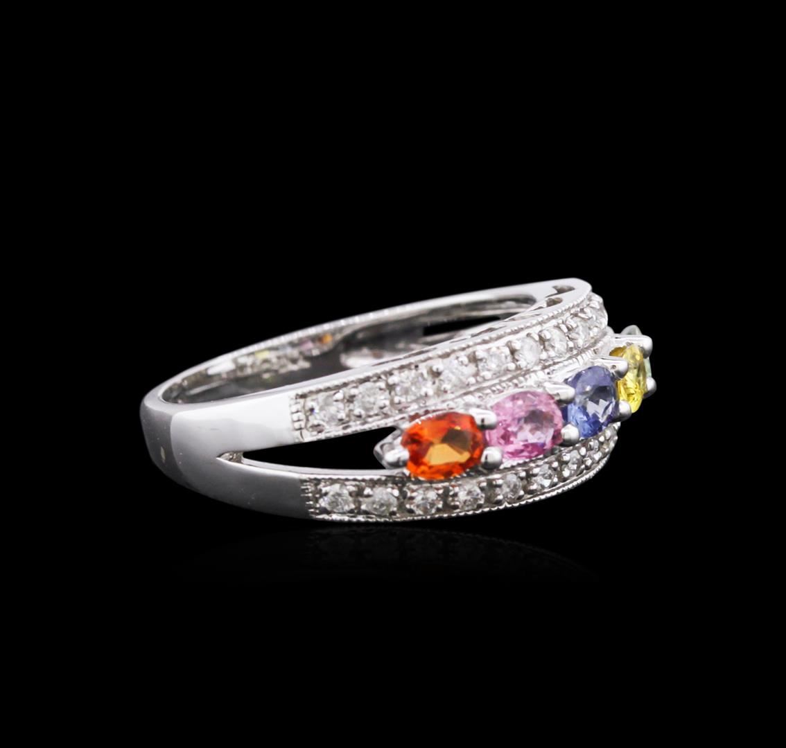 One ring featuring: 14KT white gold weighing 3.89 grams containing five treated multicolored sapphires with a total weight of 1.21ct and 26 round diamonds with a total weight of 0.30ct.