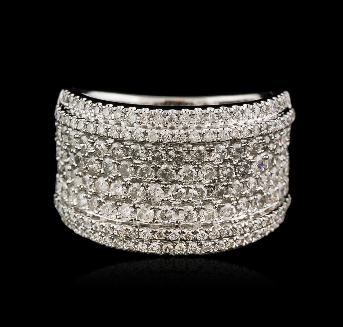 One electronically tested 14KT white gold ladies cast diamond ring with a tapered shank with a bright polish finish. Identified with markings of "14K". Condition is new. Containing: Sixty-Eight prong set round brilliant cut diamonds, measuring 1.50 - 1.50 x 0.90mm (depth est.) approximate total weight of 68 Stones = 0.84ct. Clarity: SI-2 to I-1. Color: H - I, Cut is Good. All diamonds are graded in the mounting, unless otherwise stated. One Hundred Four prong set round brilliant cut diamonds, measuring 1.00 - 1.00 x 0.60mm (depth est.) approximate total weight of 104 Stones = 0.37ct. Clarity: SI-2 to I-1. Color: H - I, Cut is Good. All diamonds are graded in the mounting, unless otherwise stated. Total Weight of Diamonds 1.21ct. Total Weight of Ring 7.40 grams. GGL Appraised at $4,915.00.