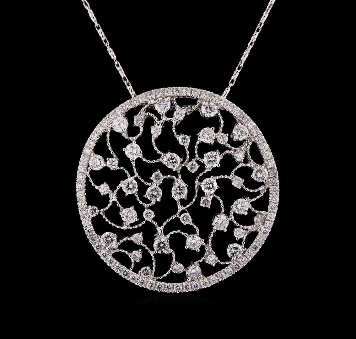 One electronically tested 14KT white gold ladies combination cast & assembled diamond pendant & chain 18.0" long, cable link with a lobster claw clasp with a bright polish finish. Identified with markings of "585". Condition is new. Containing: Thirty-Three prong set round brilliant cut diamonds, measuring 2.50 - 1.50 x 1.20mm (depth est.) approximate total weight of 33 Stones = 0.96ct. Clarity: SI-1 to I-1. Color: I - J, Cut is Good. Sixty prong set round brilliant cut diamonds, measuring 1.10 - 1.10 x 0.66mm (depth est.) approximate total weight of 60 Stones = 0.29ct. Clarity: SI-2 to I-1. Color: I - J, Cut is Good. All diamonds are graded in the mounting, unless otherwise stated. Total Weight of Diamonds 1.25ct. Total Weight of Pendant & Chain 10.50 grams. GGL Appraised.