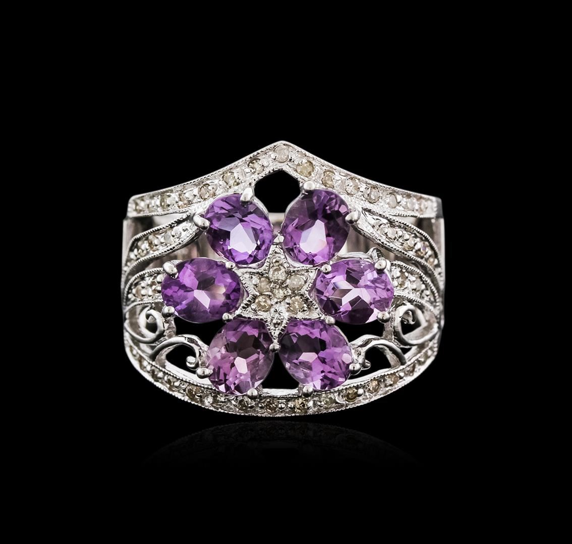 One ring featuring: 14KT white gold weighing 6.87 grams containing amethyst weighing a total of 1.25ct and diamonds weighing a total of 0.30ct.
