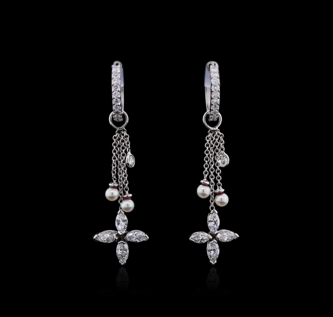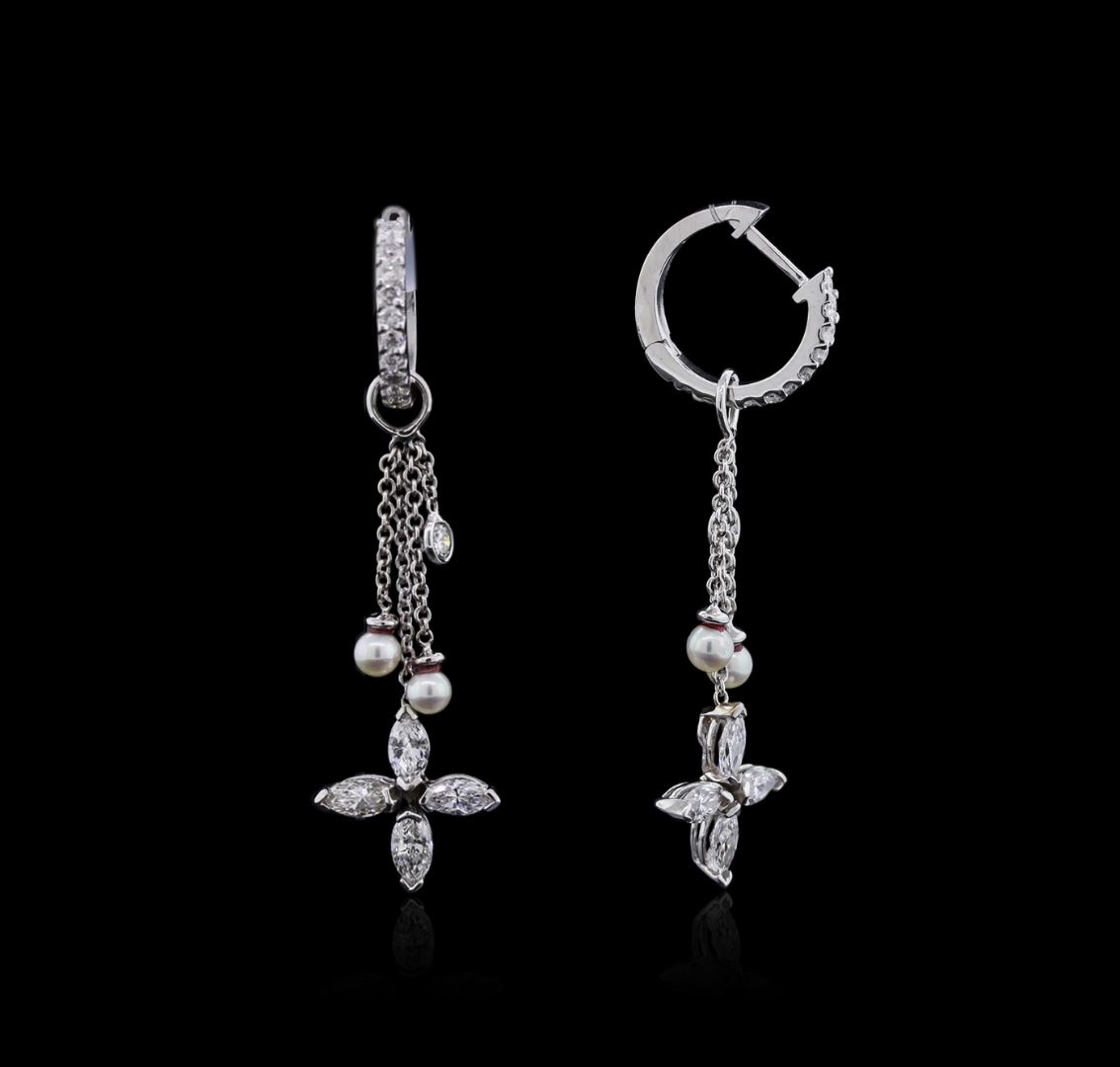 One pair of earrings featuring: 14KT white gold weighing 4.93 grams containing diamonds with a total weight of 1.25ct.